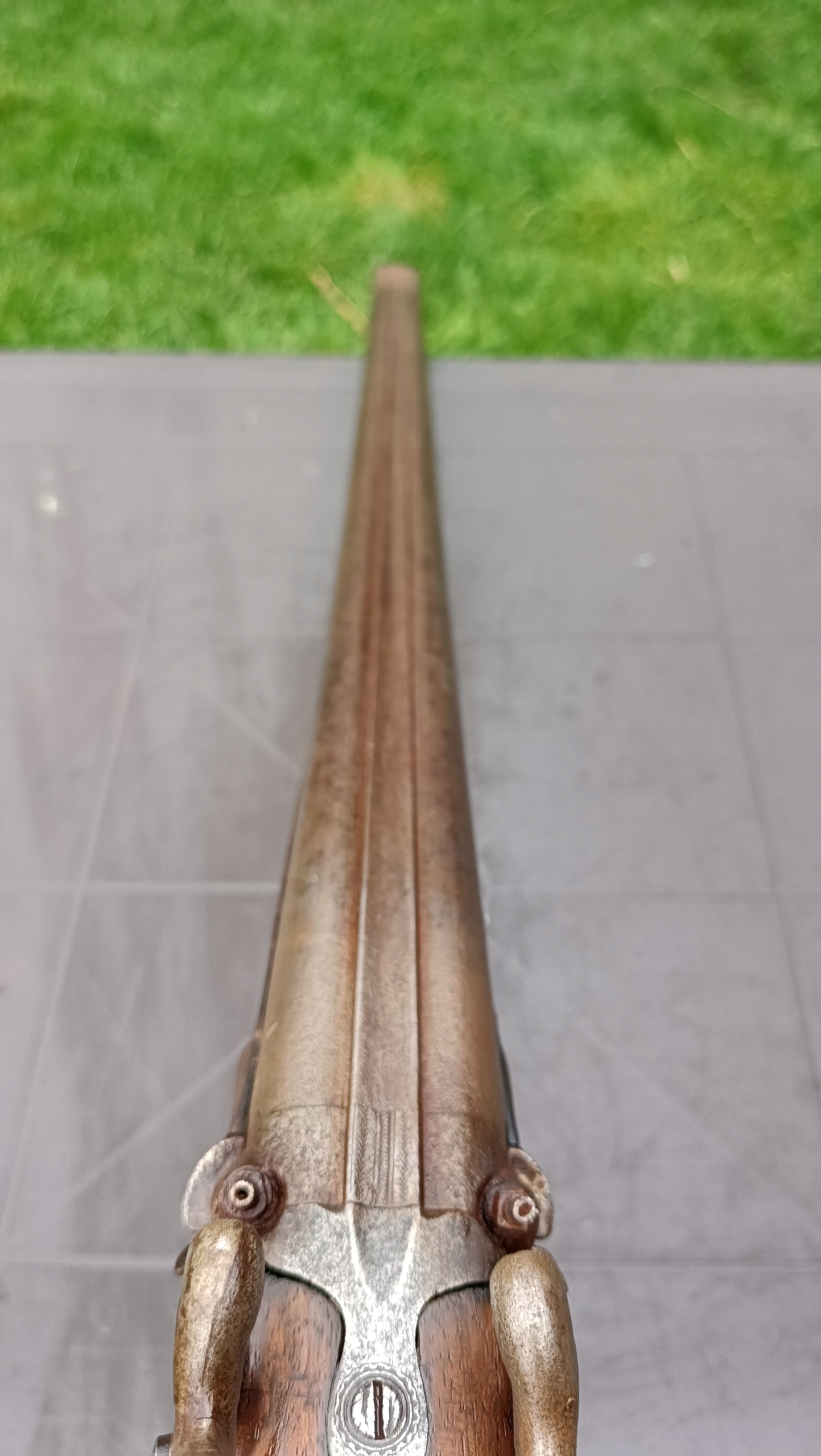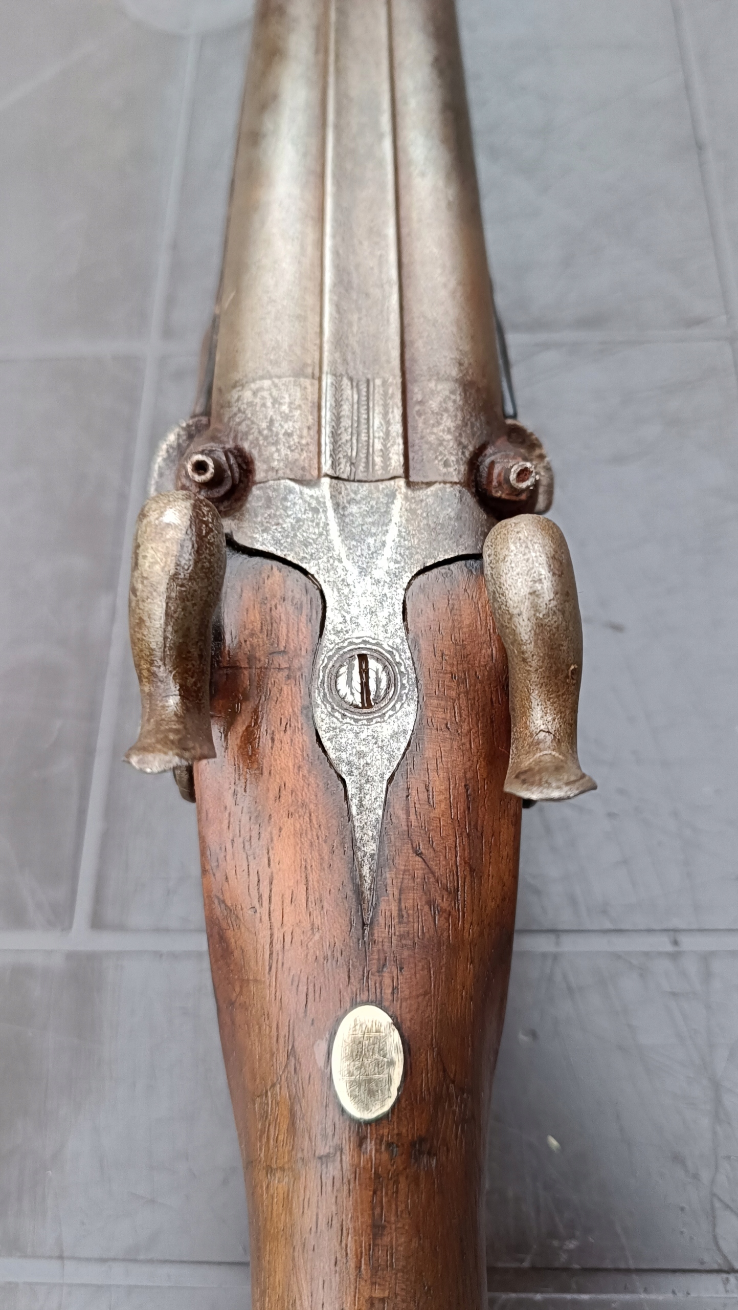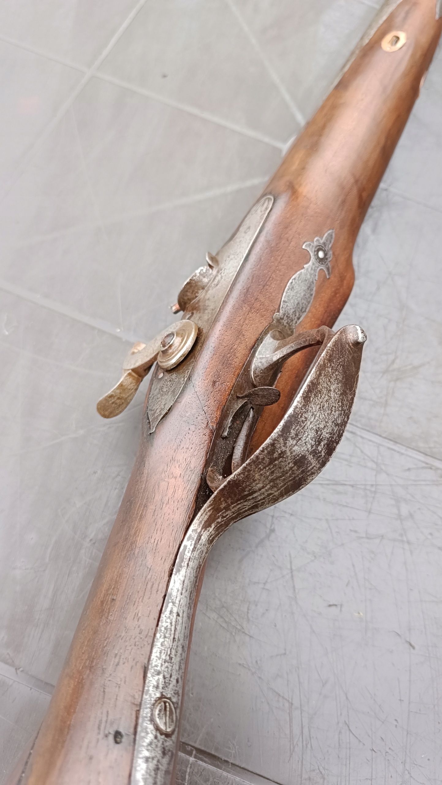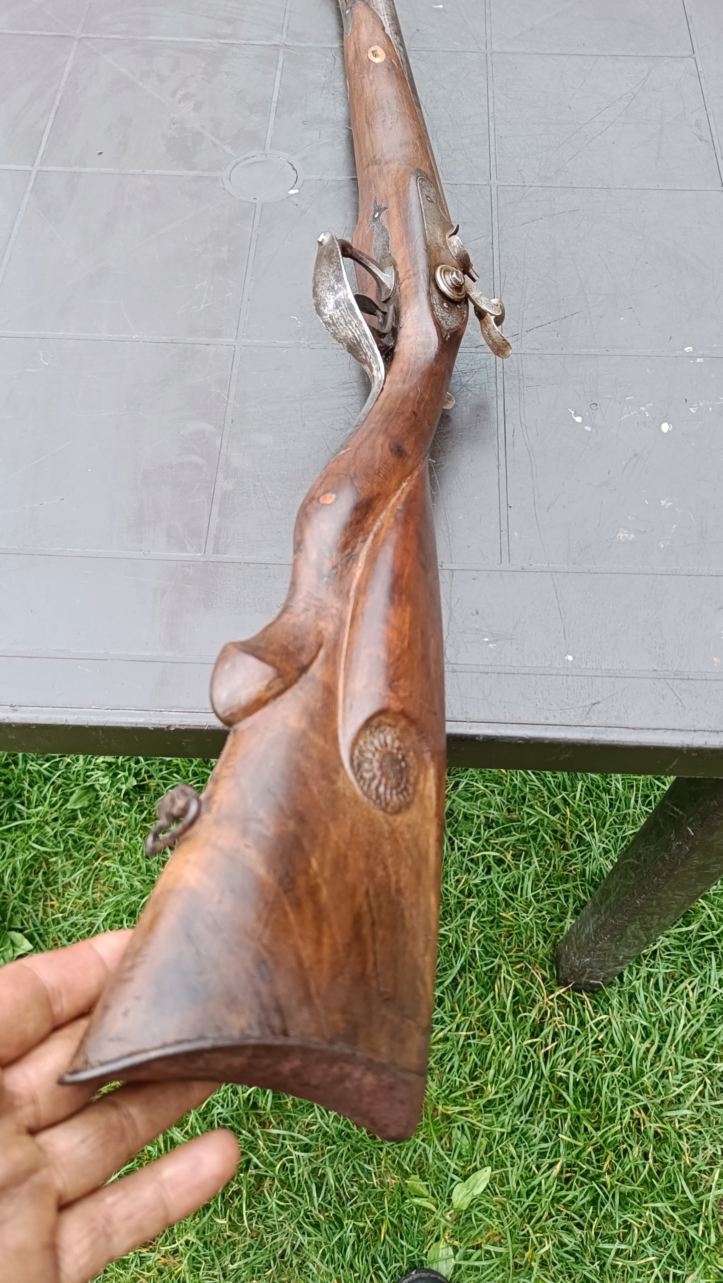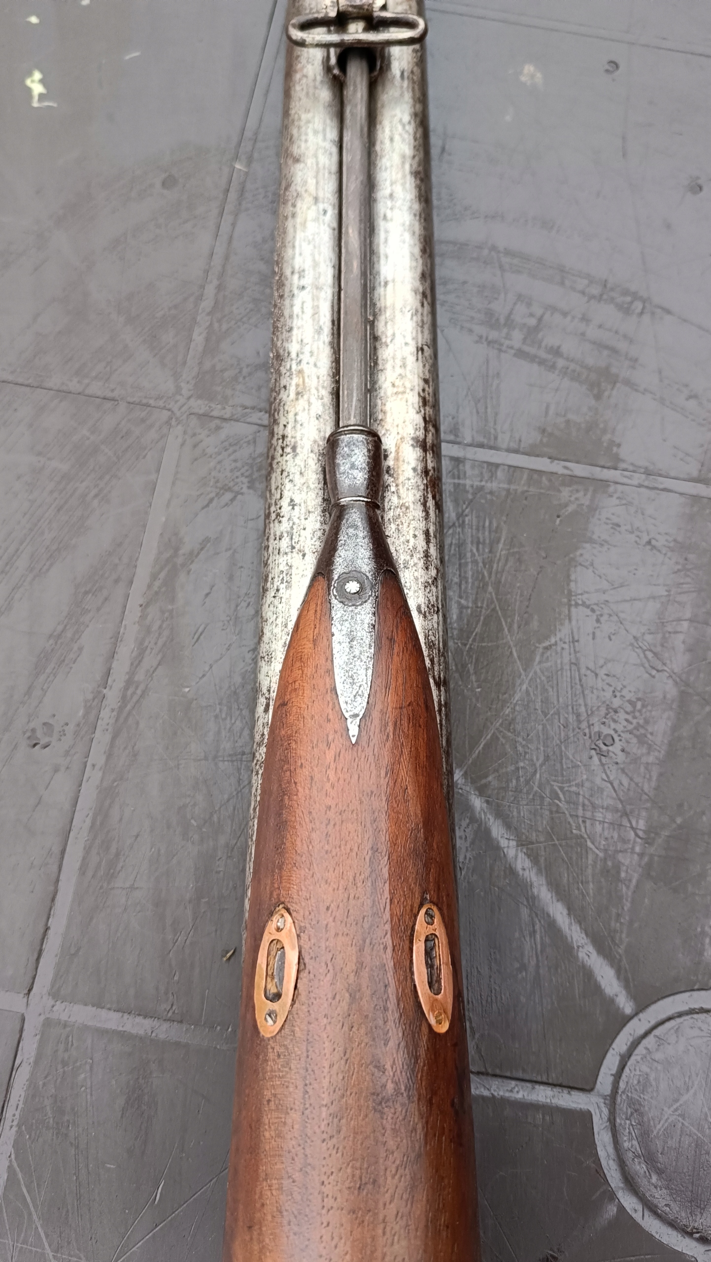 завантажений з фронту. Можна вистрілити сухий постріл, подвійне напруження. Купики працюють добре - на знімках видно невелика тріщина. Пряма бочка в хорошому стані. Дерево було зламано- сліди професійного ремонту. Каміни добре.