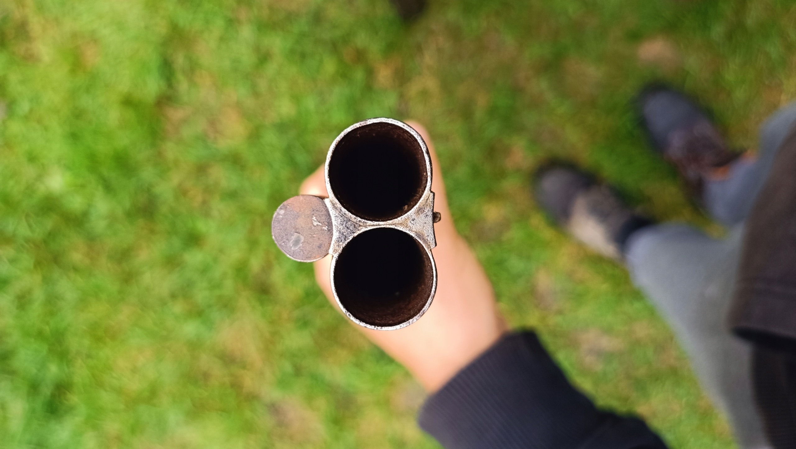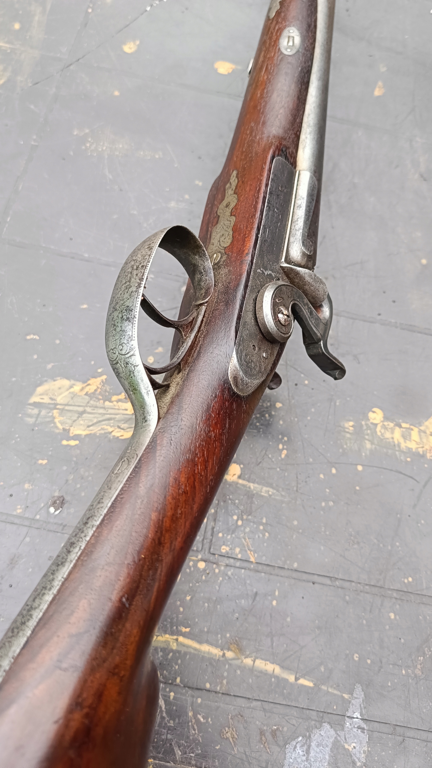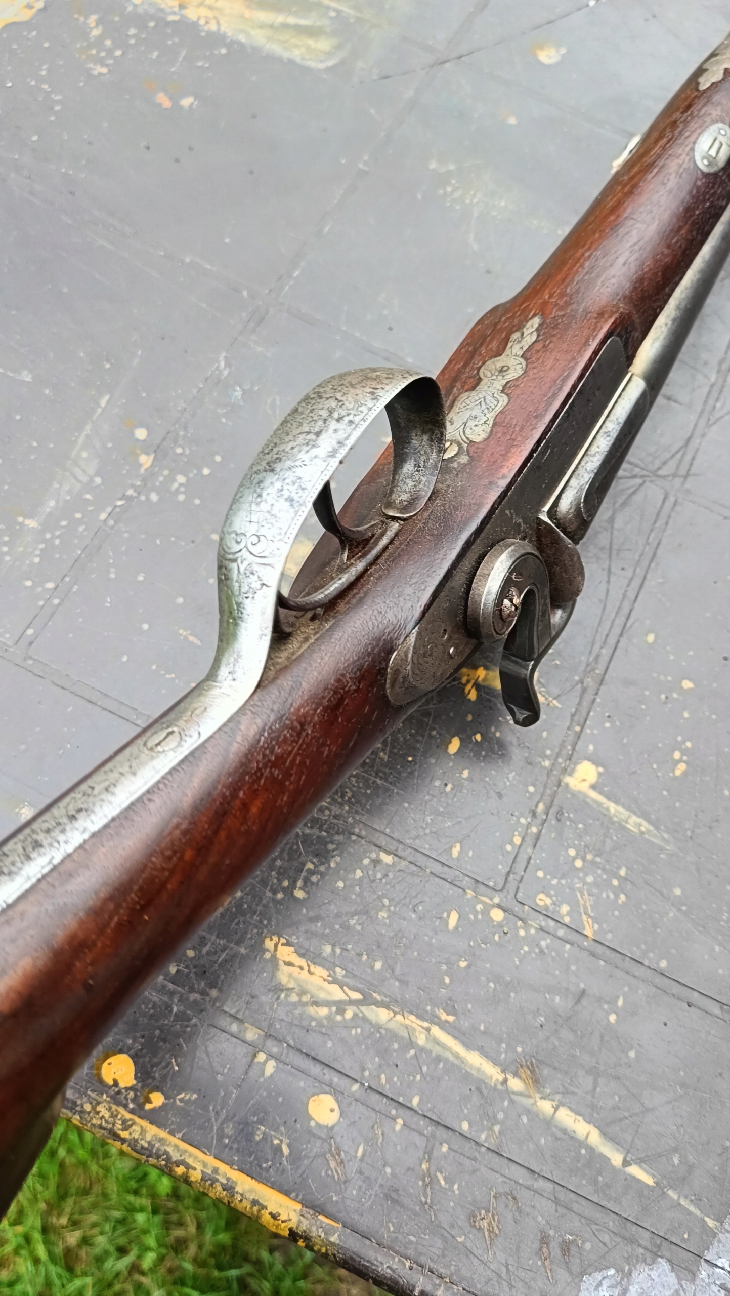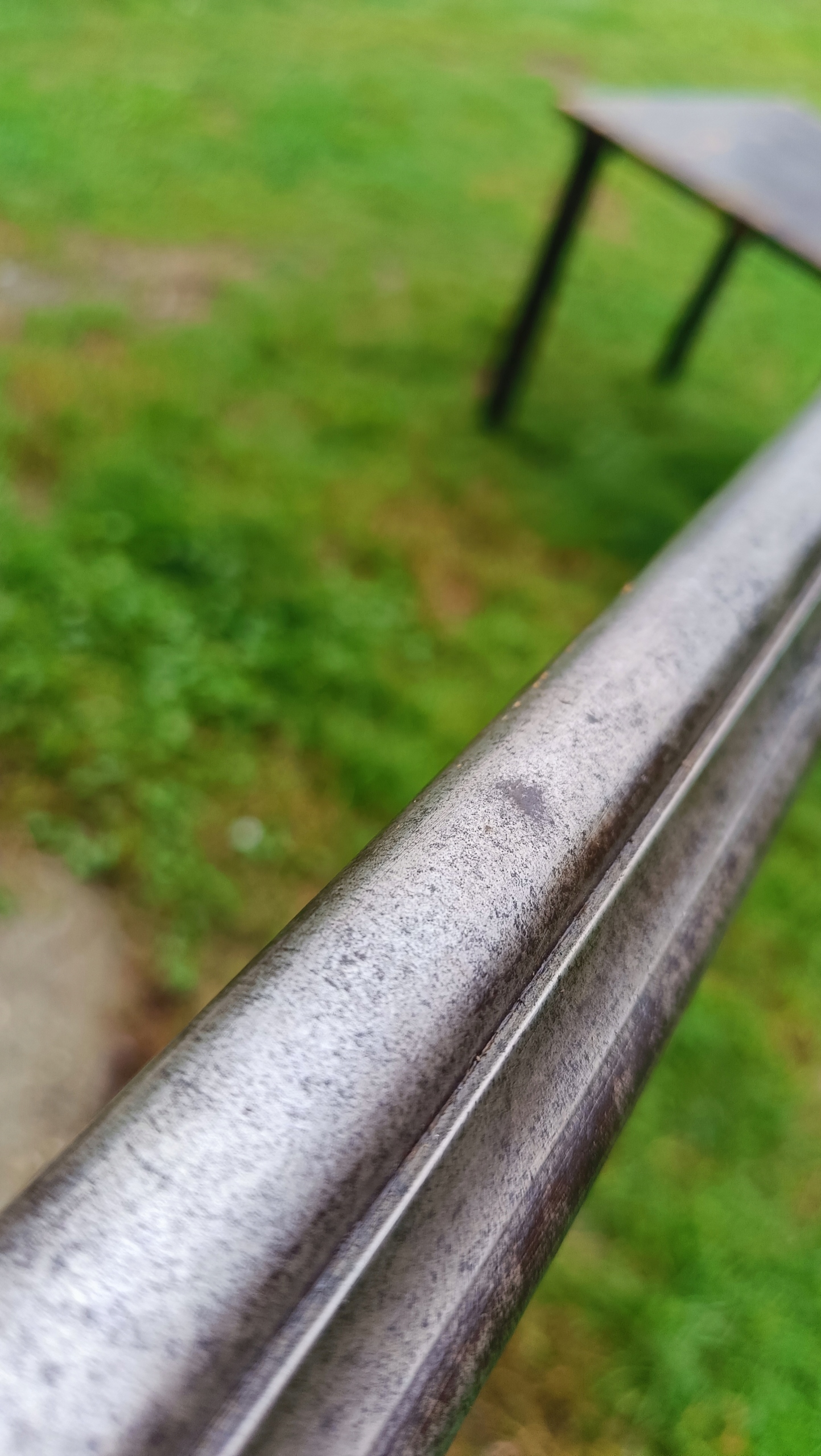 завантажено з фронту. Можна вистрілити сухий постріл, подвійне напруження. Замки тригера затягуються двома брусками. Проста бочка, невелика вм'ятина, видно на фотографії. Дерево в хорошому стані.