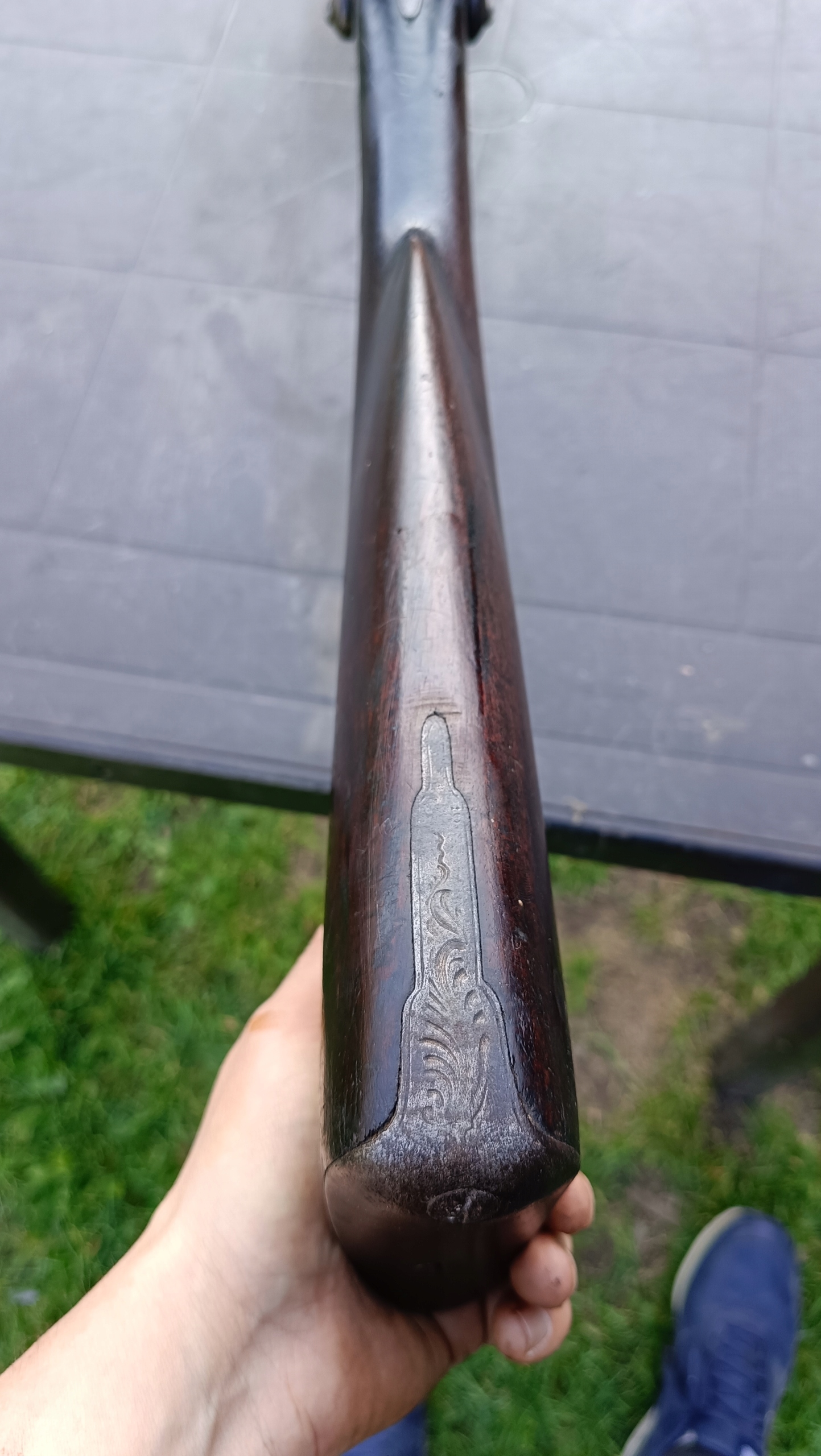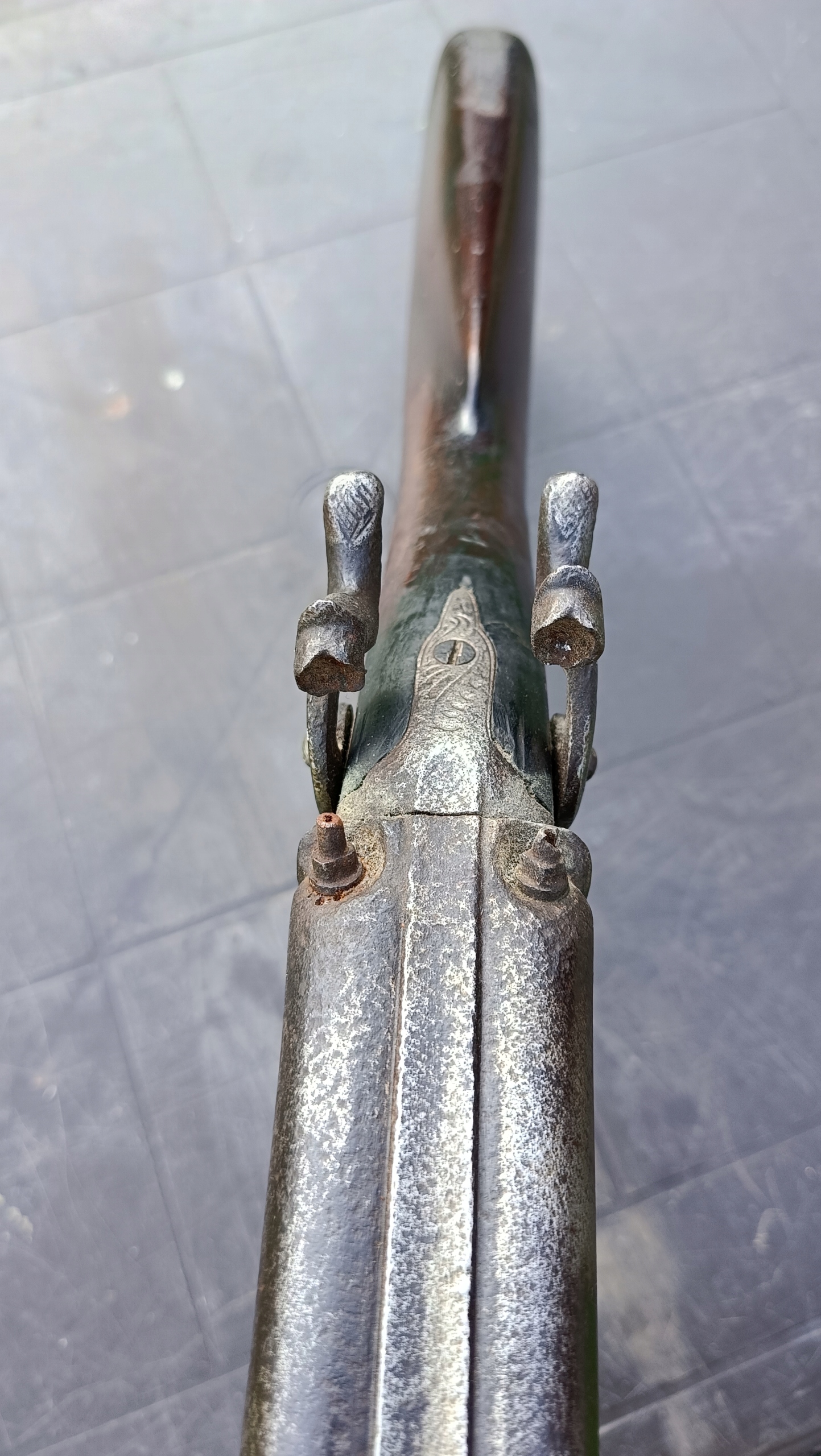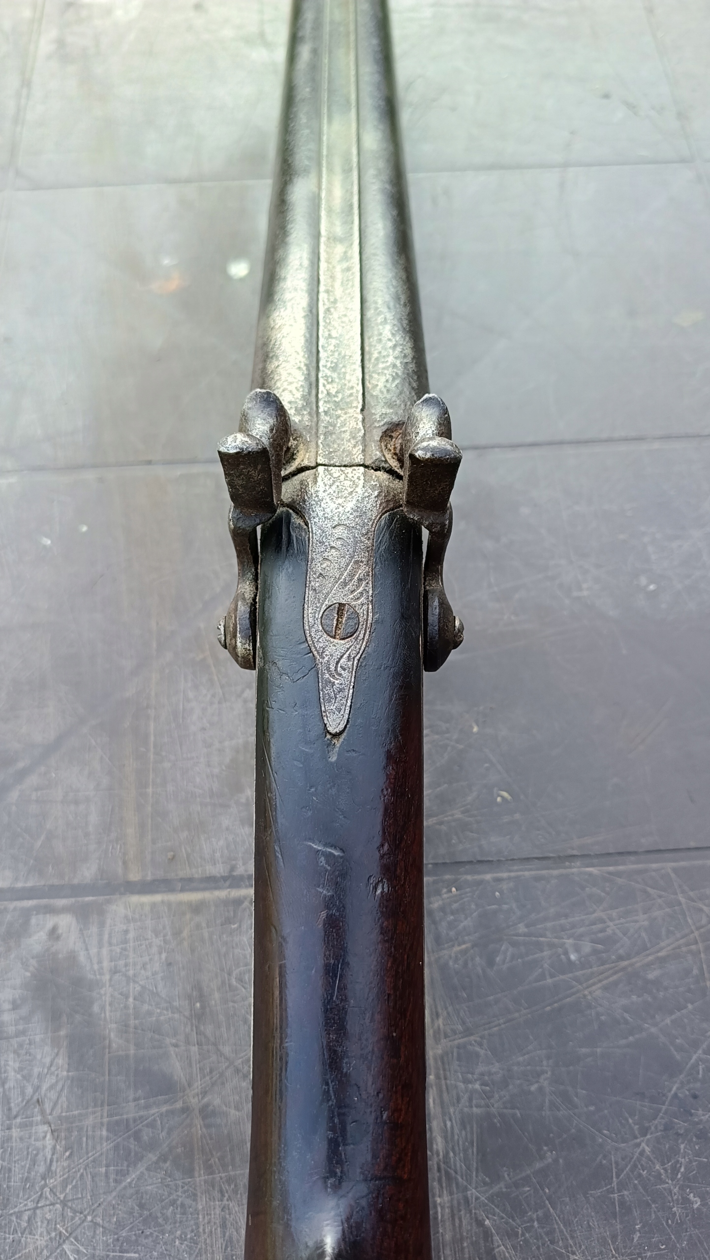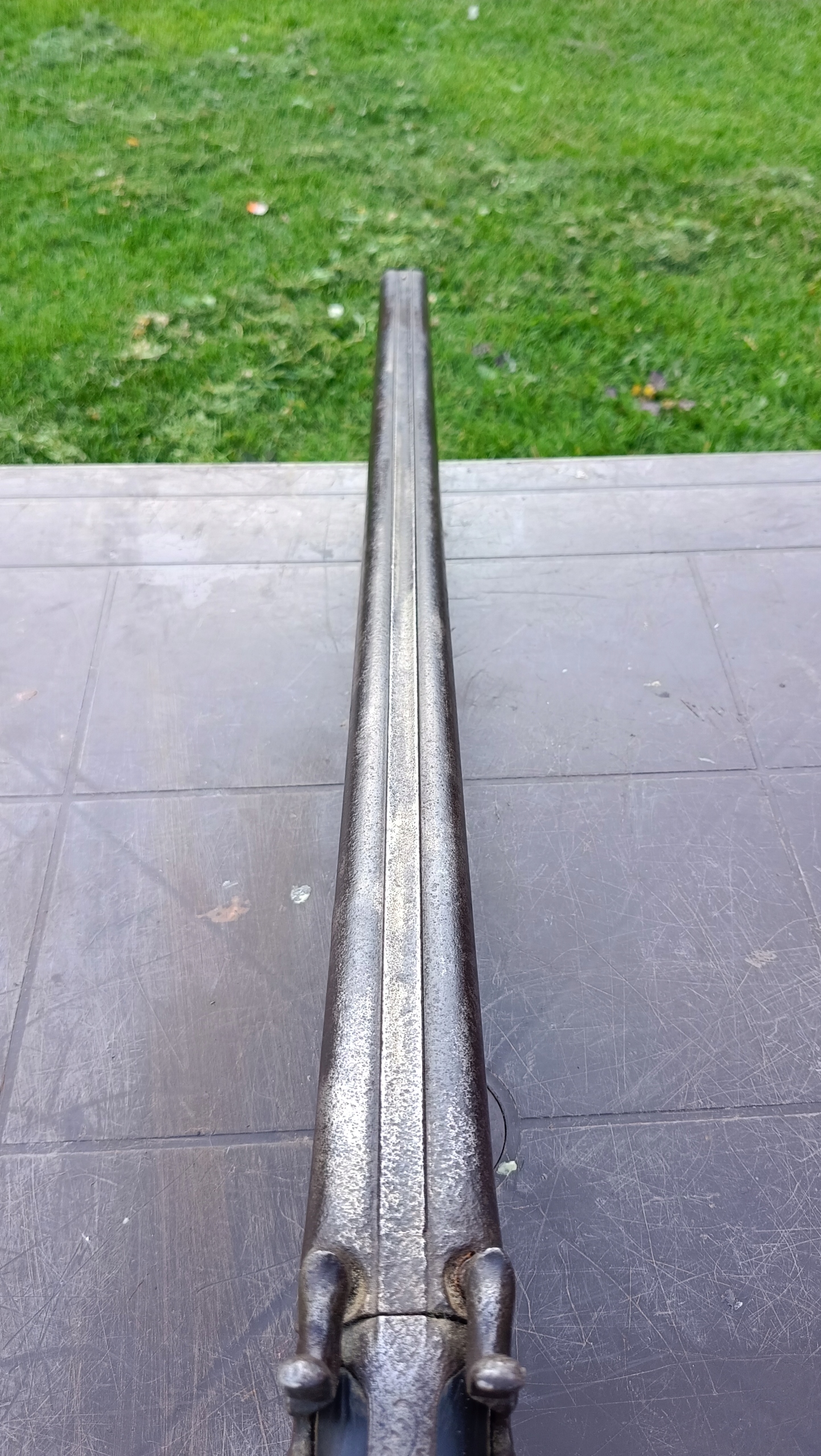 завантажений з фронту. Можна вистрілити сухий постріл, подвійне напруження. Замки прямо до іншого такту. Пряма бочка в хорошому стані, невеликі ями. Дерево в хорошому стані. Камін в порядку, інший, який потрібно замінити. Один кран має невелику тріщину, видно на фотографії та невелику слабкість.