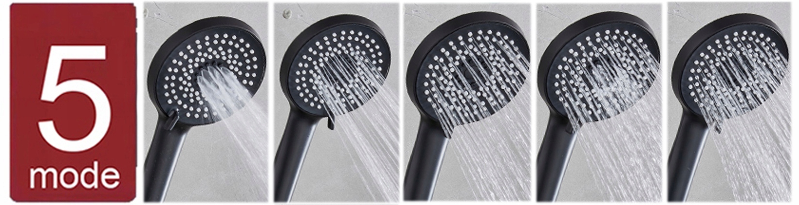 ЧОРНИЙ ДУШОВИЙ НАБІР, 5-функціональна душова лійка + шланг + тримач для душу