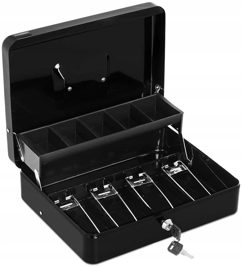 Велика місткістьмоделі ST-CB-90R дозволяє розміщувати в ній гроші та інші предмети. Вставка для монет має 5 відділень, а для банкнот - 4. Крім того, є тиски, які використовуються для утримання, серед іншого, квитанції в одному місці.
