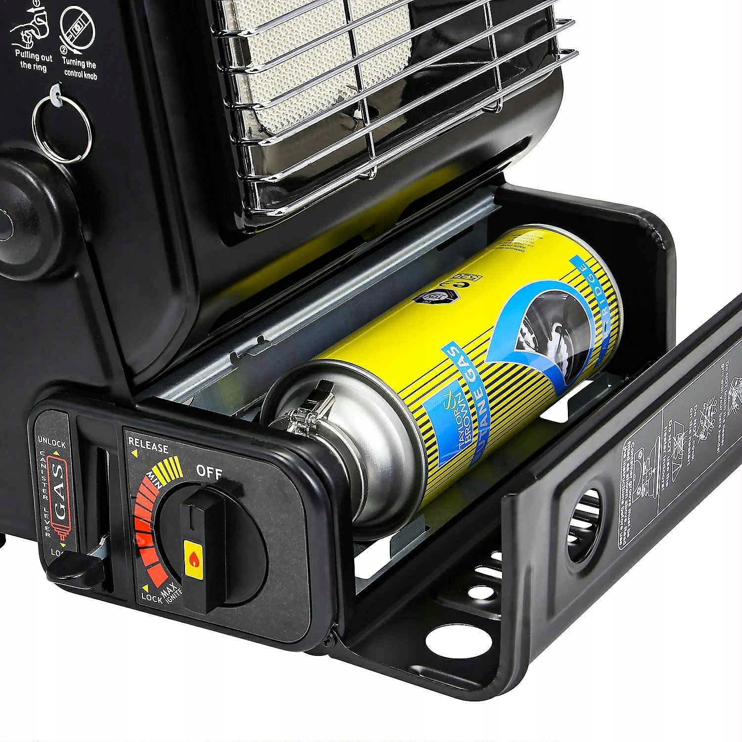Тейлор і Браун портативний газовий радіатор 1,3 кВт, компактний, чорний, керамічний пальник для кемпінгу та риболовлі, з автоматичним запалюванням;
