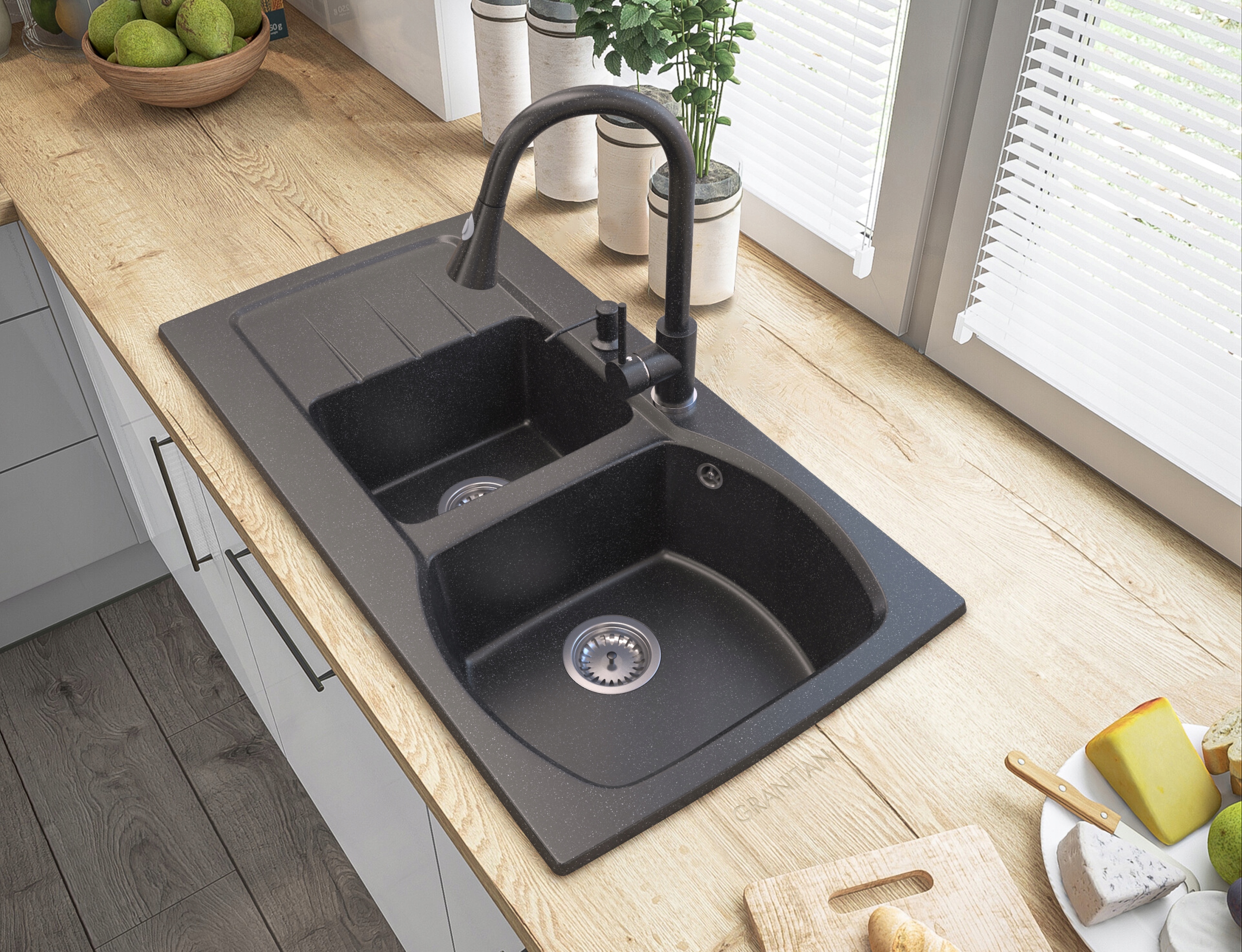 ЧОРНИЙ ГРАНІТ РІДКОГО МИЛА КУХНЯ РАКОВИНА ДИСПЕНСЕР