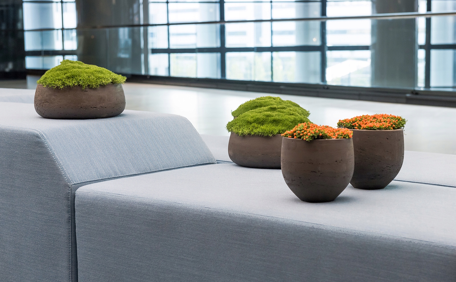 Декоративний вазон Mini Orb виготовлений з цементу в поєднанні зі скловолокном. Вазон з шорсткою, матовою поверхнею. Спосіб виробництва подібний до виробництва глиняних та глиняних виробів.