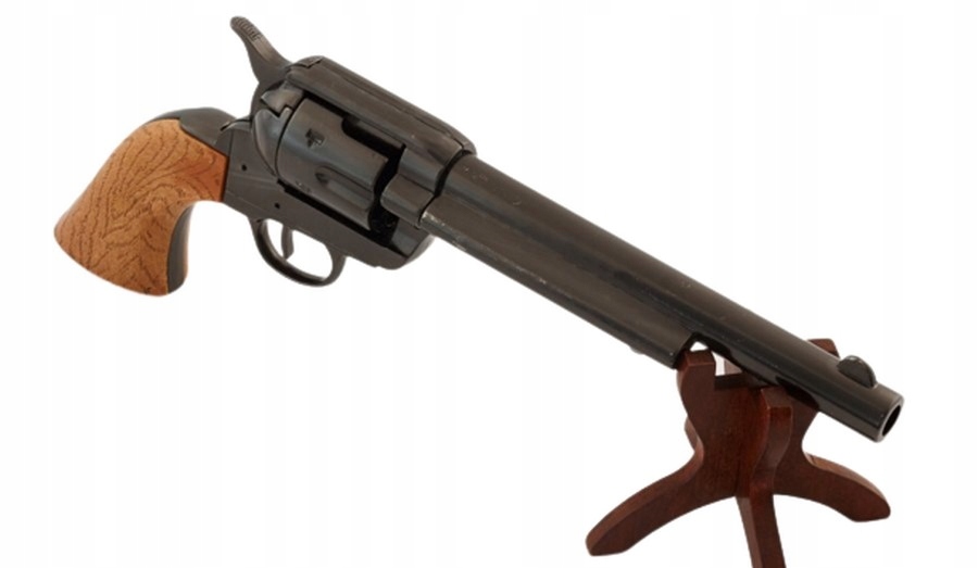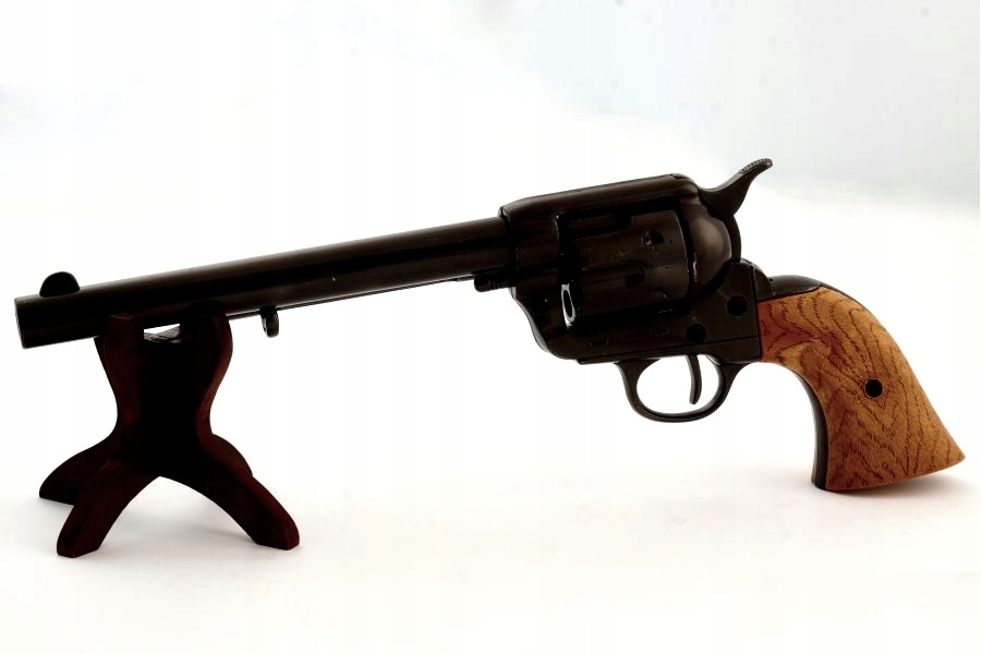 Чудова копія Colt Single Action Army 0,44 Calibre у кавалерійській версії 1873 року. Репліка виготовлена з чорного сплаву ZnAl, ручка виготовлена з тонованого дерева. Можливість стрільби так званим сухим пострілом. Кольт має обертовий барабан із шістьма патронниками. Барабан може повертатися безпосередньо або повертатися за допомогою механізму при зведеному курку. У репліці задня підпірна стінка оснащена кришкою барабана, яка відкривається вниз з одного боку. Під бочкою є робочий розвантажувач штанги, як показано на фото.