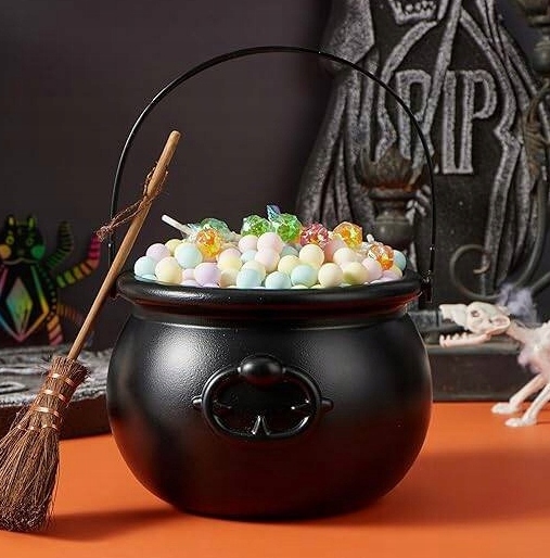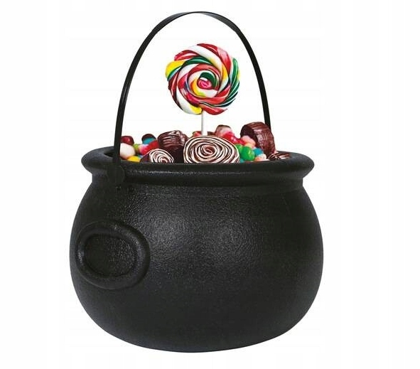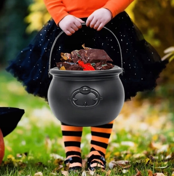 Чорний казан на Хелловін обов’язковий для кожної вечірки на Хелловін! Дітям сподобається носити його, збираючи солодощі, а також ви можете використовувати його як оригінальну прикрасу. Це невелике зручне відерце додасть кімнаті неповторну святкову атмосферу та зробить веселощі ще більш захоплюючим. Також ідеально підходить як подарунок для маленьких!