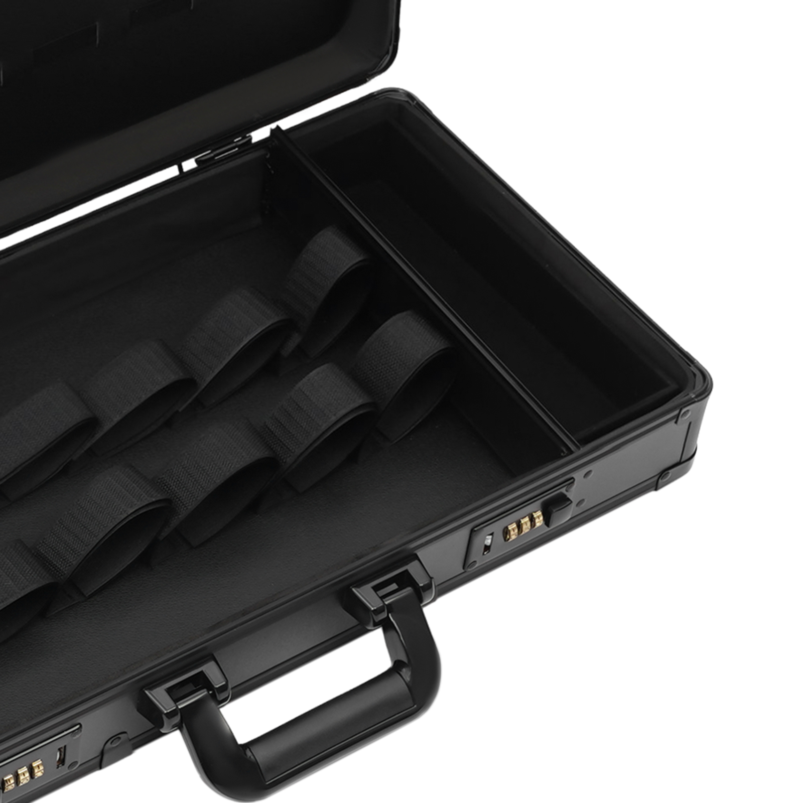 Наш унікальний кейс для перукаря — це інноваційний аксесуар, який зробить роботу кожного перукаря легшою та елегантнішою. Маючи кілька відділень для зберігання більшості перукарських приладдя, він розроблений з урахуванням портативності, демонстрації та подорожей, що робить його чудовим доповненням до бібліотеки інструментів будь-якого професійного перукаря. Кодовий замок надійно захищає вміст, а компактний (21,65*10,6*3,94 дюймів) дизайн полегшує транспортування. Завдяки цьому ваша перукарська робота стане більш ефективною.