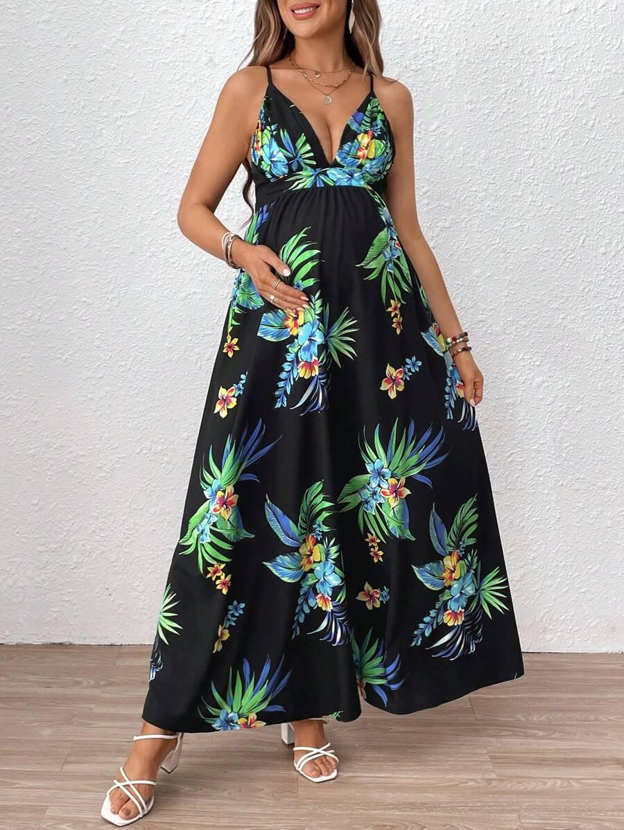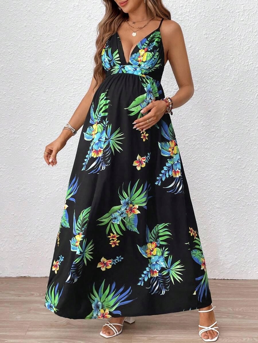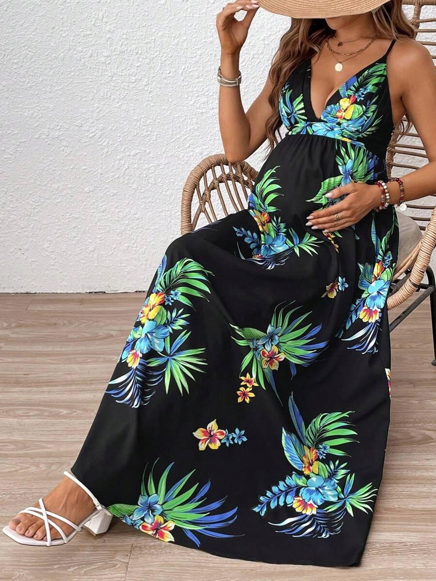 Чорний класичний максі -материнський плаття на ремінці декольте V Shein 46