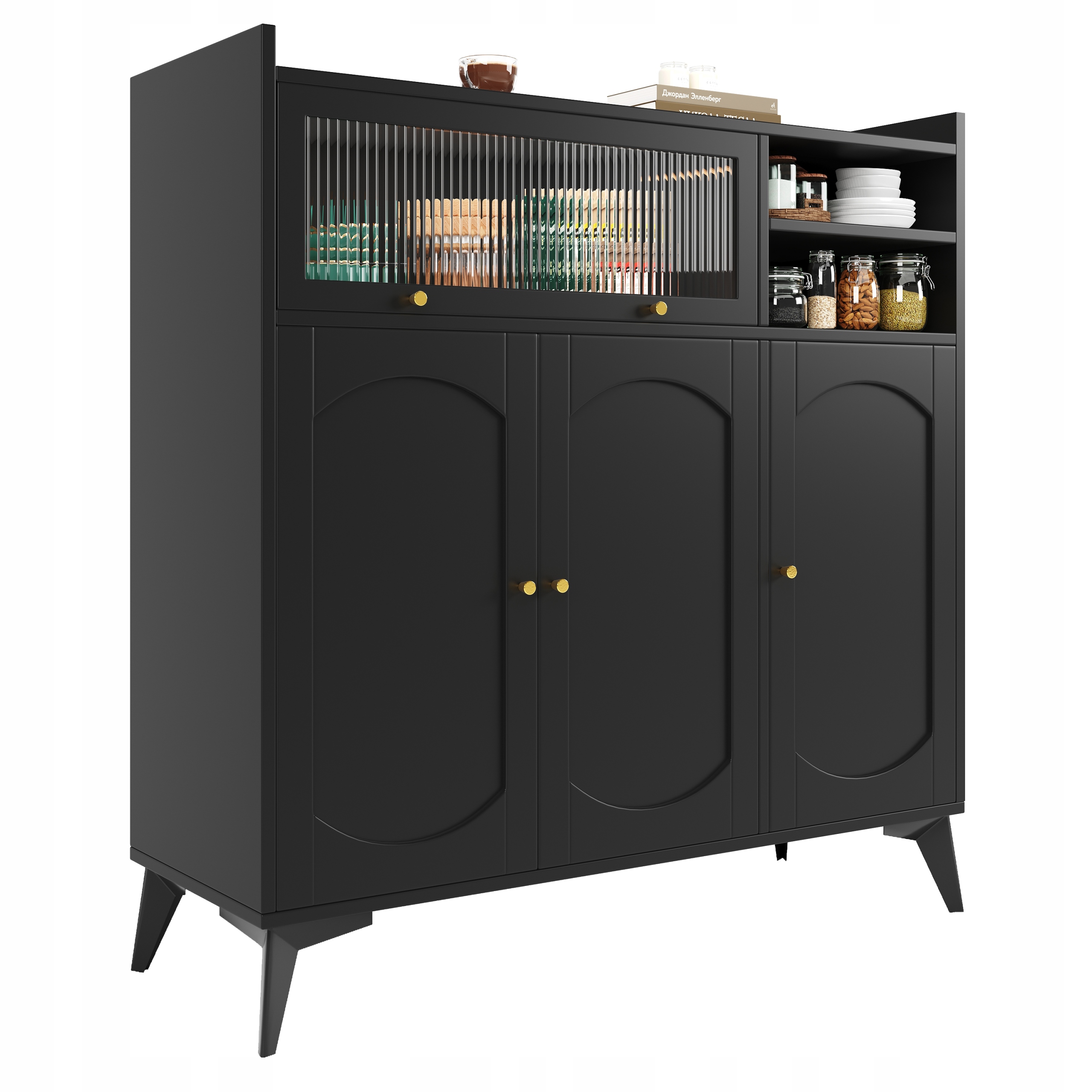 - Цей шафа для зберігання виготовлена з преміум -матеріалів і має міцну та міцну конструкцію. Золоті ручки доповнюють чорну шафу і свідчать про відмінне ремесло. Вони забезпечують комфортний досвід і довго вам добре служать вдома.