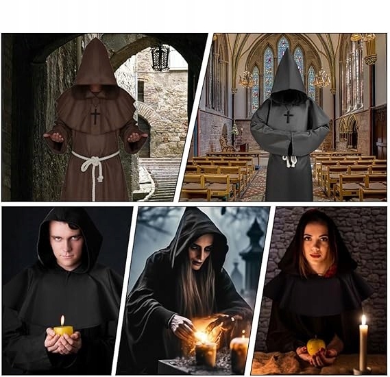Візьміть на себе роль таємничого ченця, ченця чи священика з цією елегантною накидкою з капюшоном! Костюм ідеально підходить для Хеллоуїна, тематичної вечірки, косплею або виступу. Довгий, повітряний матеріал накидки надає характерний драматичний вигляд, а капюшон підкреслює темний і загадковий ефект вбрання.