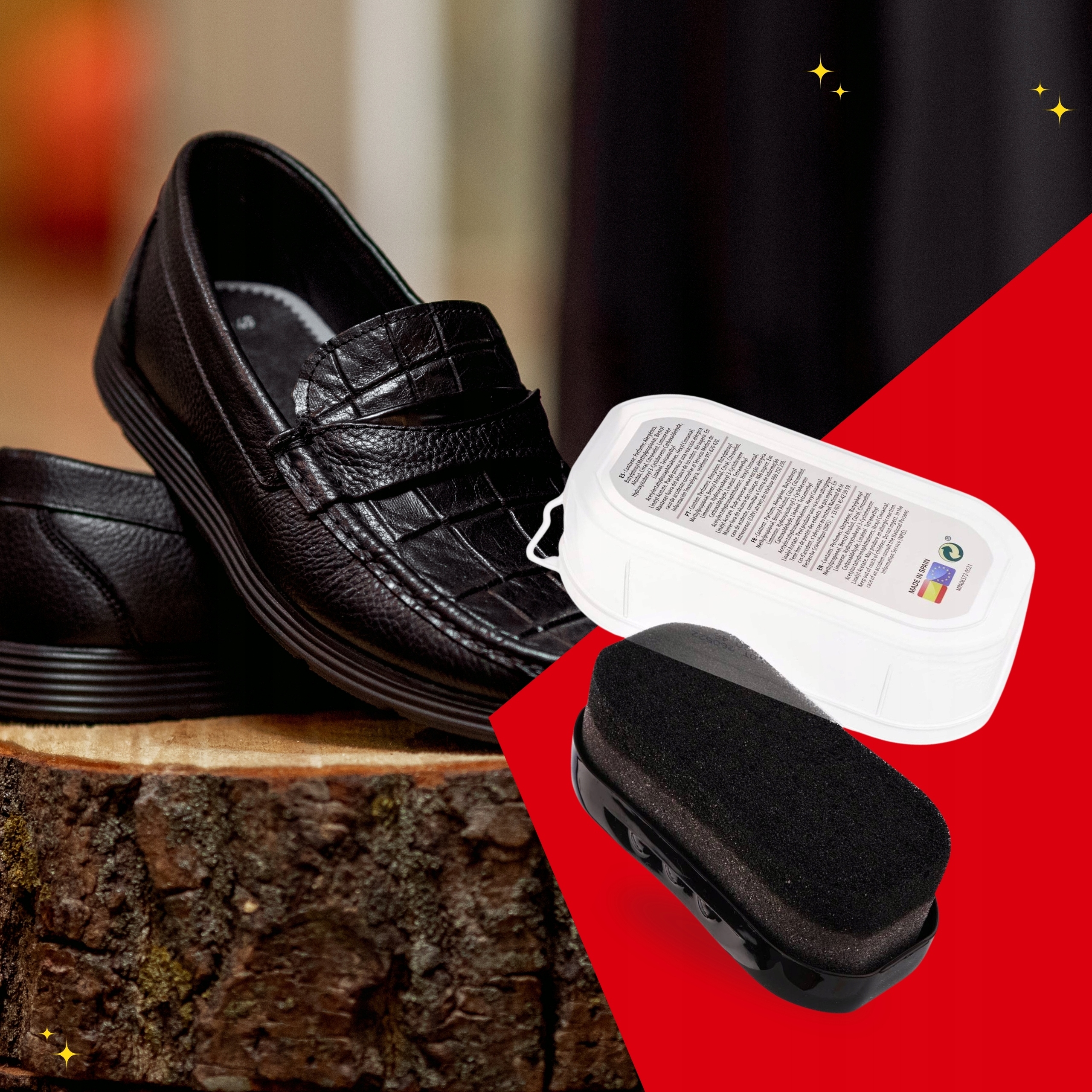 Примітка: Не використовуйте губку як єдиний засіб для догляду – рекомендується доповнювати догляд шкіряною пастою або кремом. Може злегка затемнити світлу шкіру.