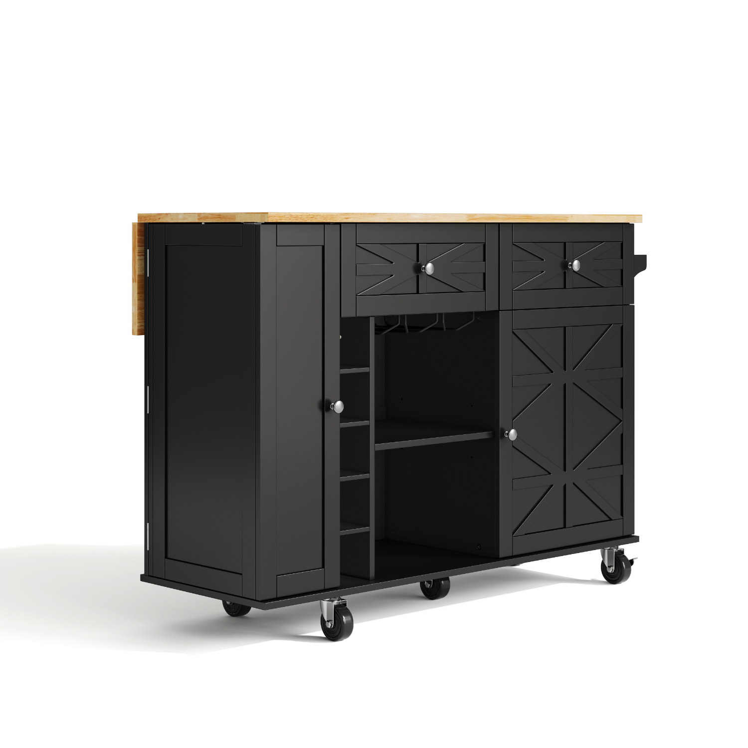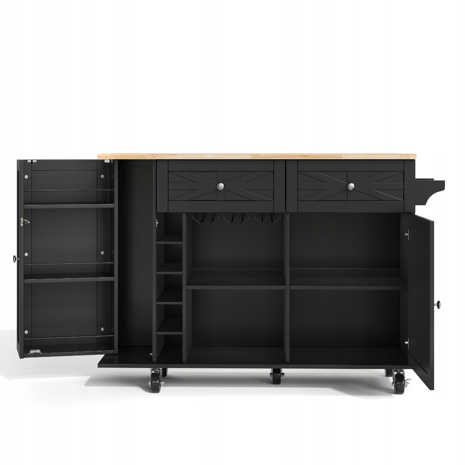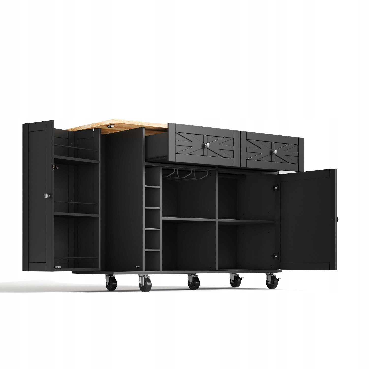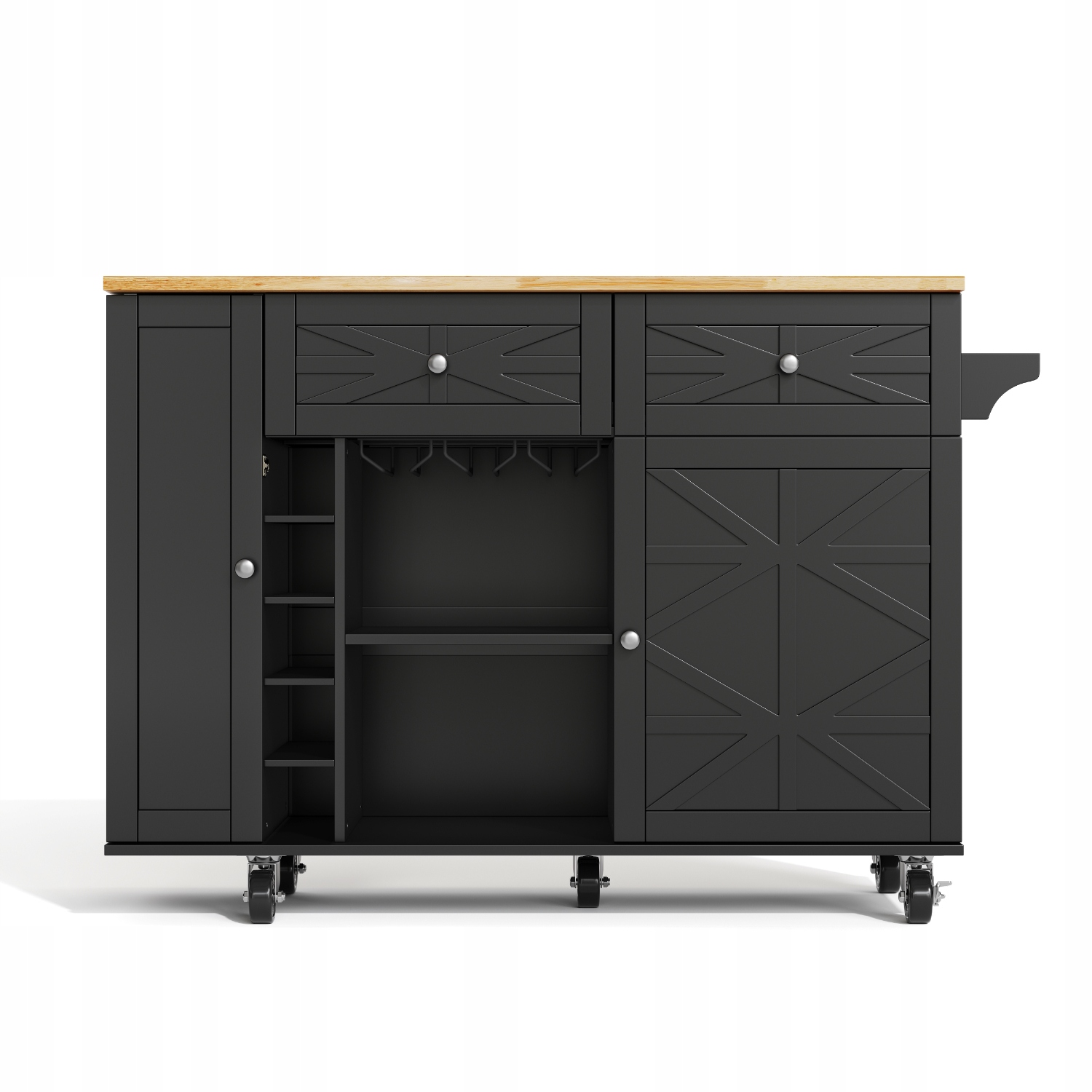 Чорний кухонний острів 120x45(70)x 89 см - висувна стільниця + 5 коліщаток із замком