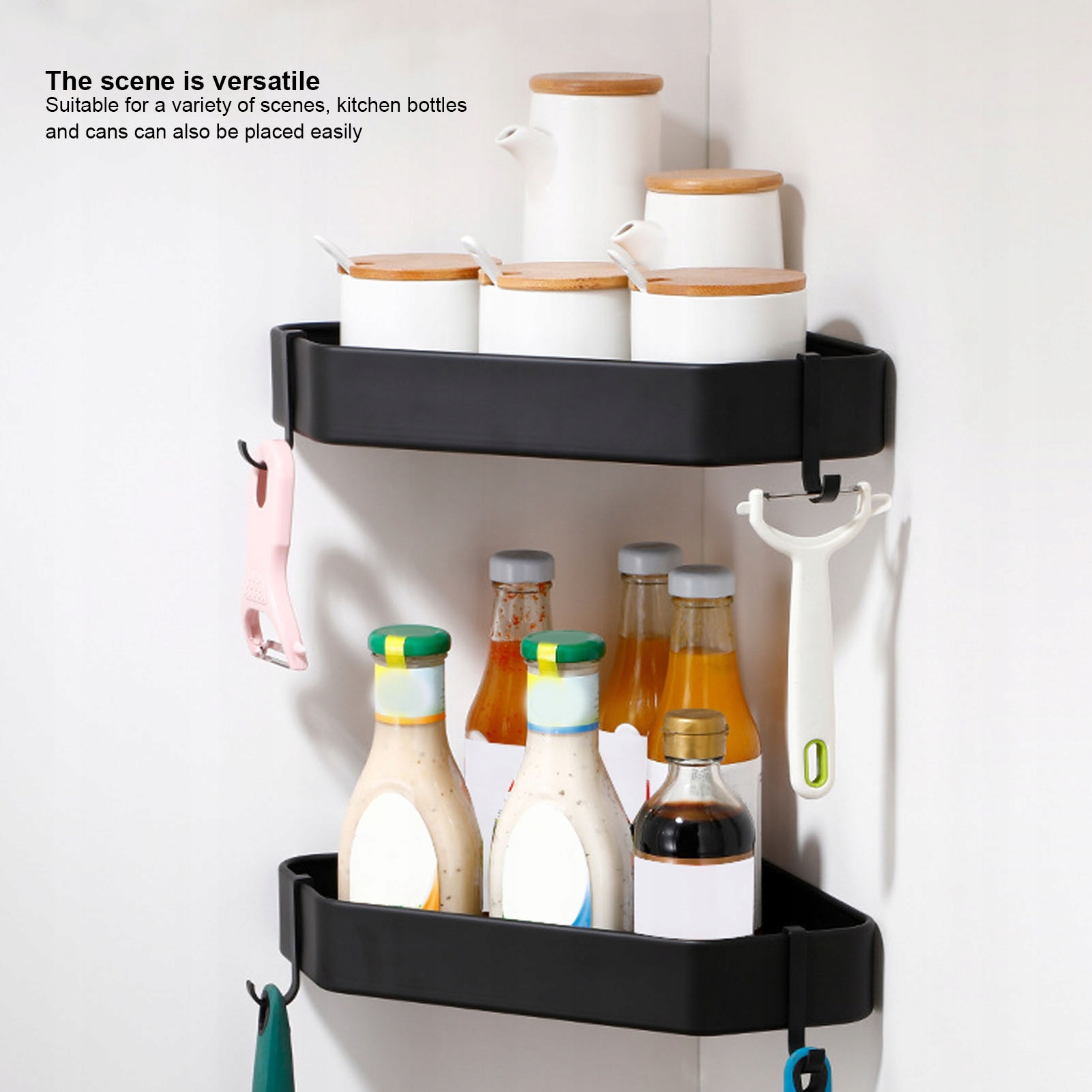 4. Застосування: 90 кутових кутів для зберігання шампуню, миття ЦРУ, губки для ванни та багато іншого. Він також підходить для кухні та гуртожитку.