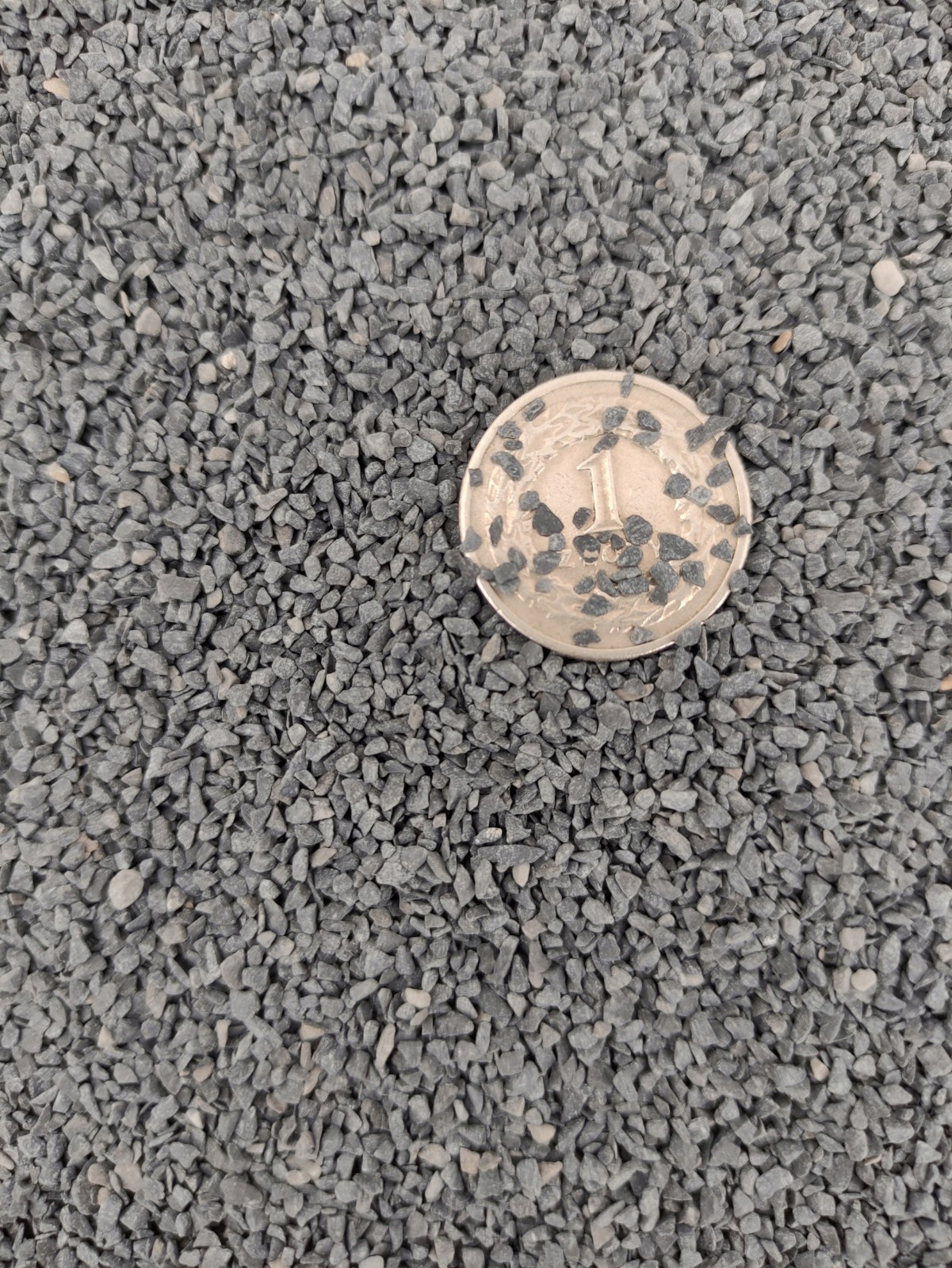 Найбільш насичений чорний колір каменю коли він мокрий. Сухий гравій стає сірим і чорним.