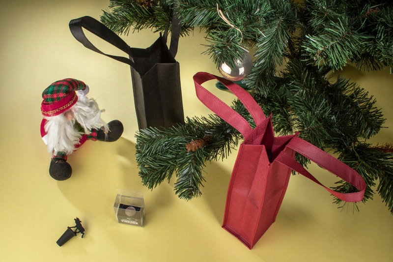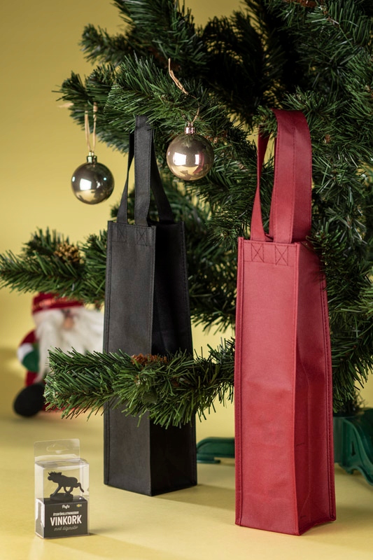 Сумка-контейнер-ідеальна пропозиція для естетичної та практичної подарункової упаковки для пляшки вина. Він легкий, міцний, і після складання він займає дуже мало місця. Він має широкі, зручні ручки, які підвищують безпеку перенесеного продукту. Сумочка для багаторазового використання. Виготовлений з неплкуваного матеріалу