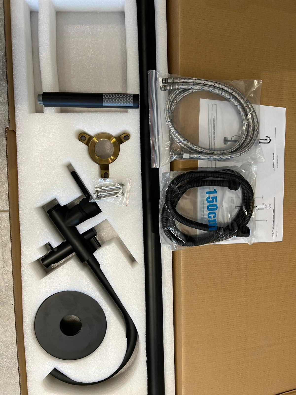 З’єднувальні шланги для холодної/гарячої води та кронштейн для кріплення підлоги включені