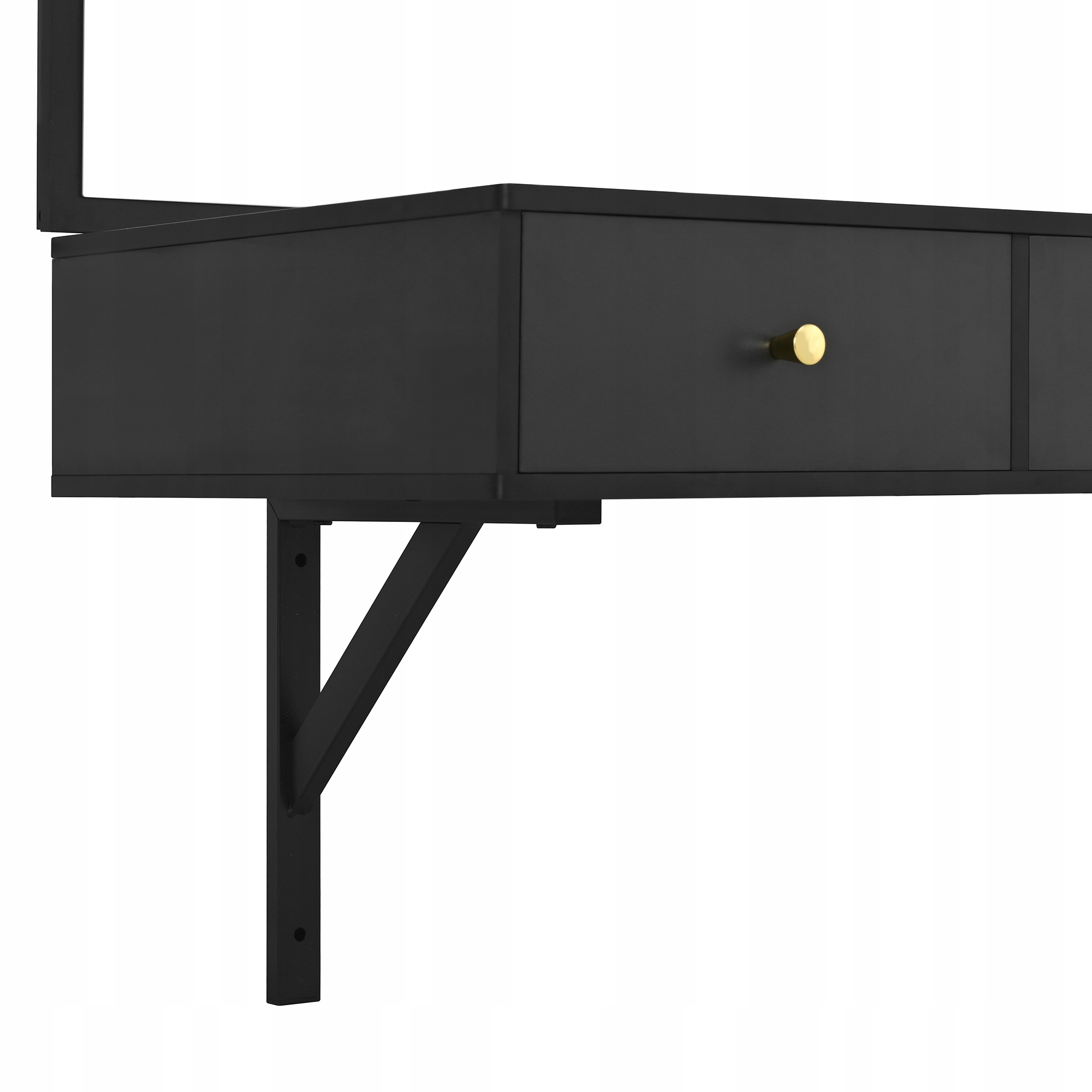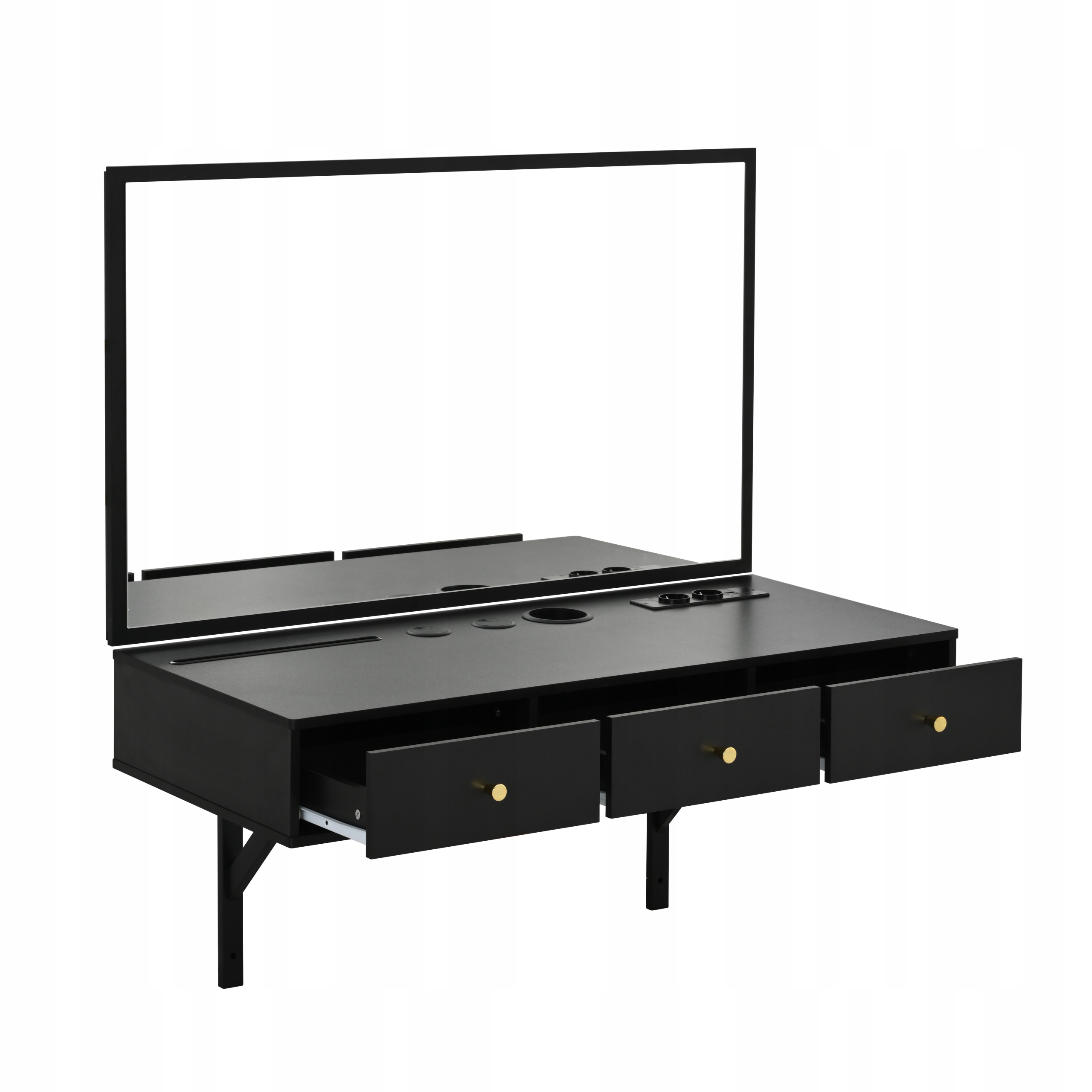 Чорний підвісний туалетний столик із дзеркалом, трьома ящиками та розетками