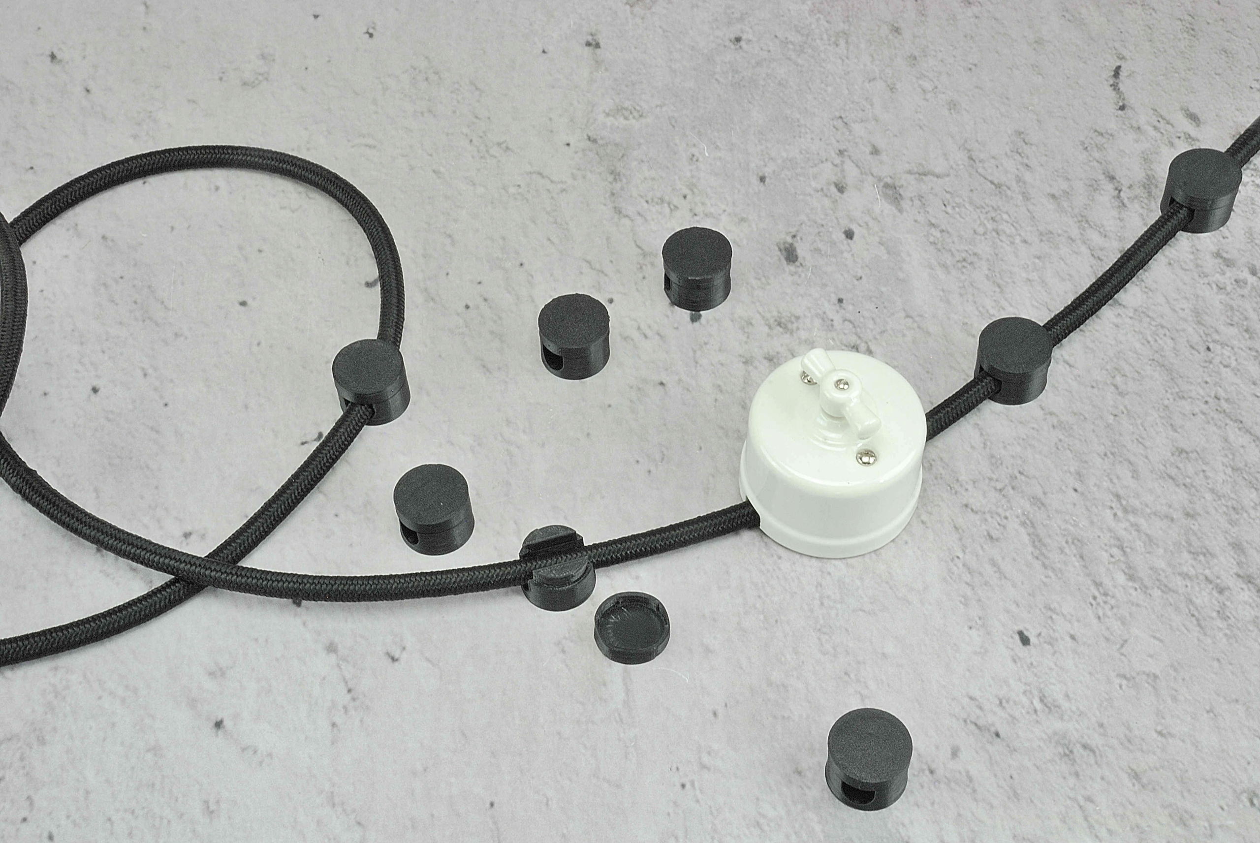чорний плетений кабельний тримач 10 мм для ретро-поверхневої установки в стилі лофт