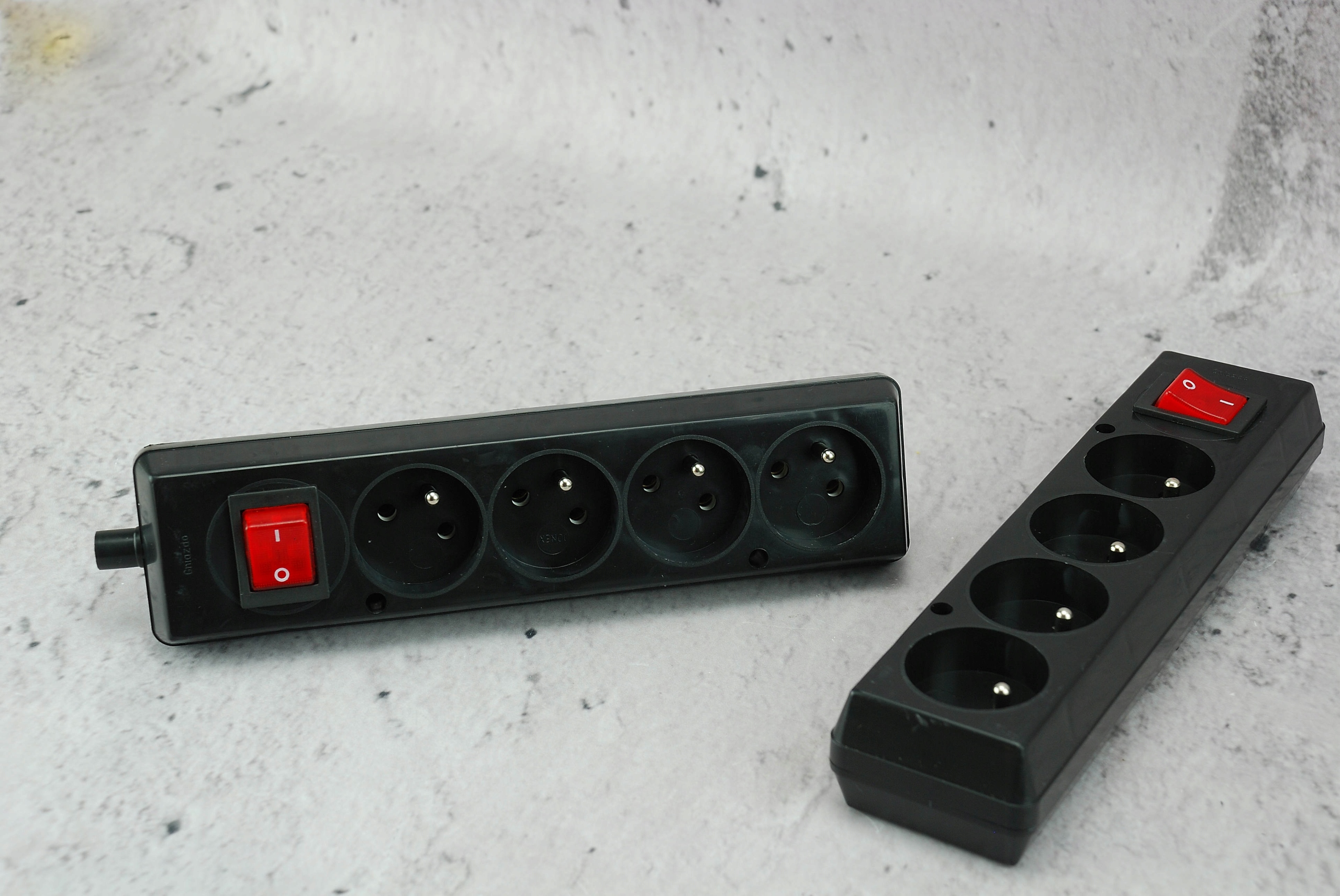 розетка чотириразова з вимикачем - стрічка із заземленням - 1шт