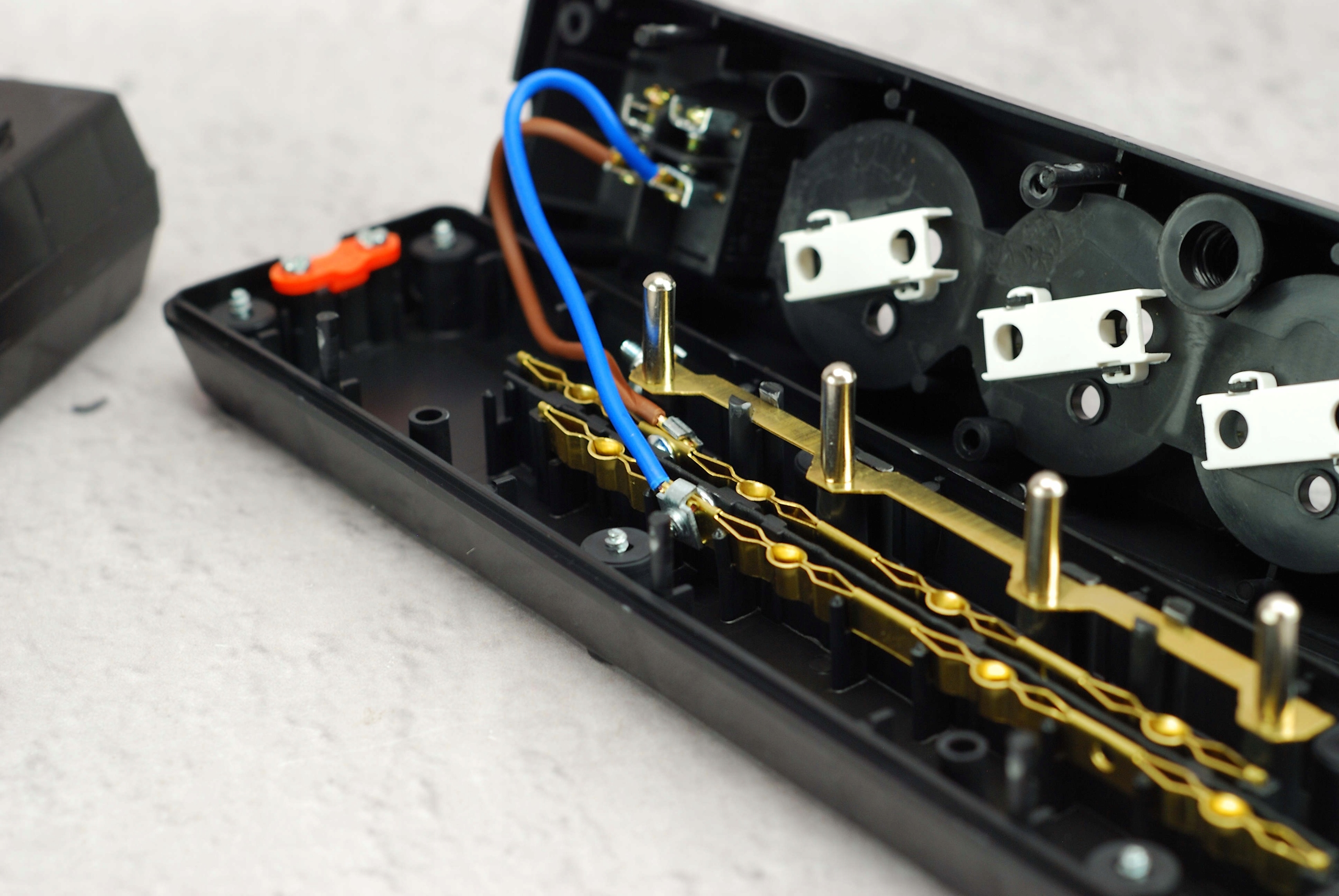 Корпус розетки складається з двох елементів, скріплених між собою гвинтами. Всередині всі елементи для прикручування кабелів знімні, що значно полегшує монтаж.
