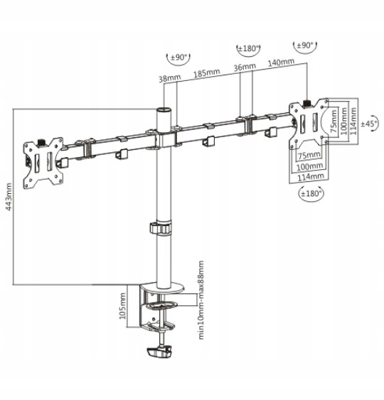 ✔️ поворот монітора на 180 градусів і нахил в діапазоні від -90 до + 90 градусів і плавне регулювання висоти по вертикалі