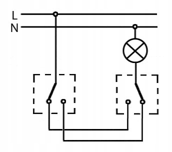 Один двоконтурний вимикач також дозволяє керувати (вмикати та вимикати) одним джерелом світла з 2 місць (використовувати як сходовий вимикач).