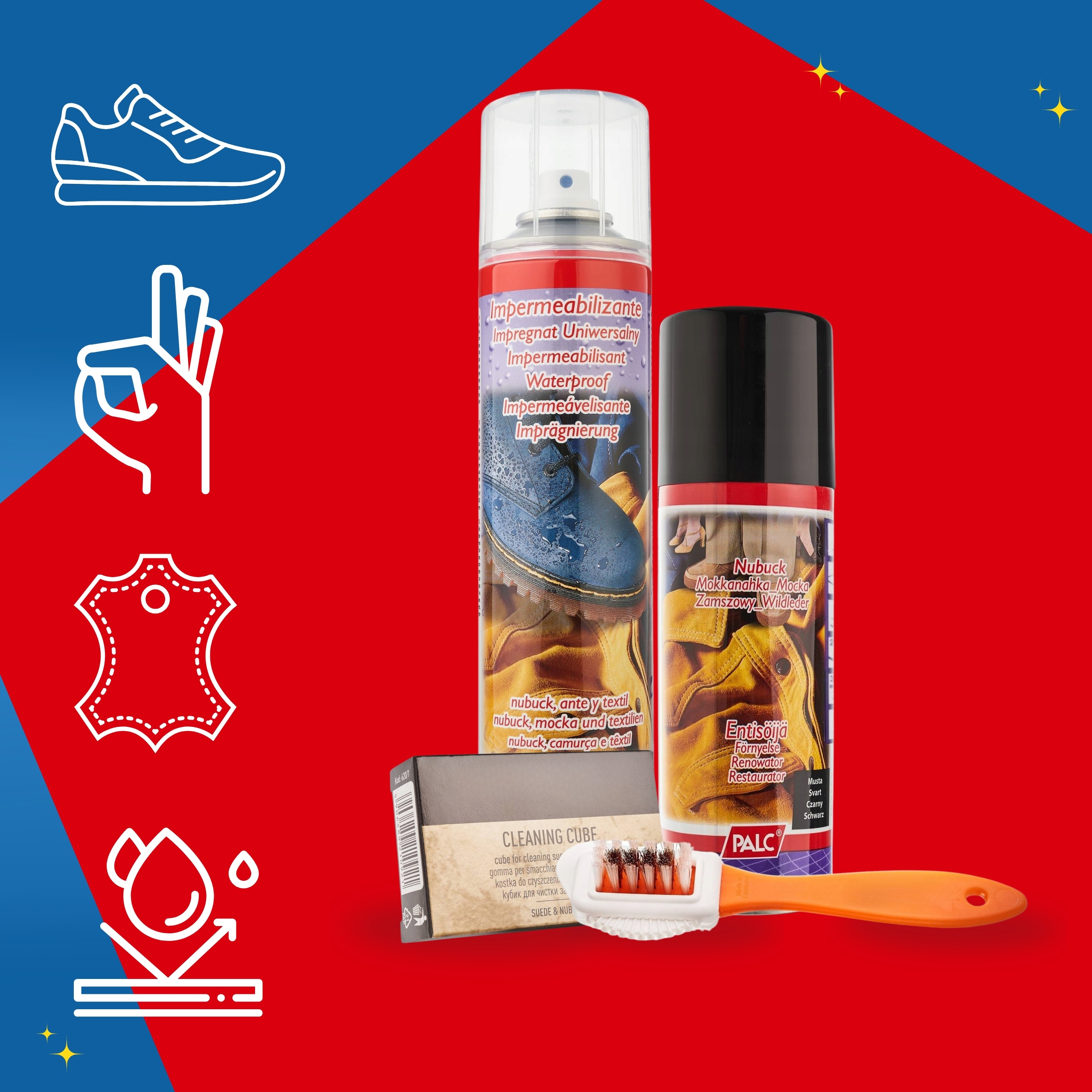 ✔️ Працює на всіх типах шкіри (нубук, оксамит, спилок, зерниста шкіра), а також на текстилі, синтетиці та натуральних матеріалах