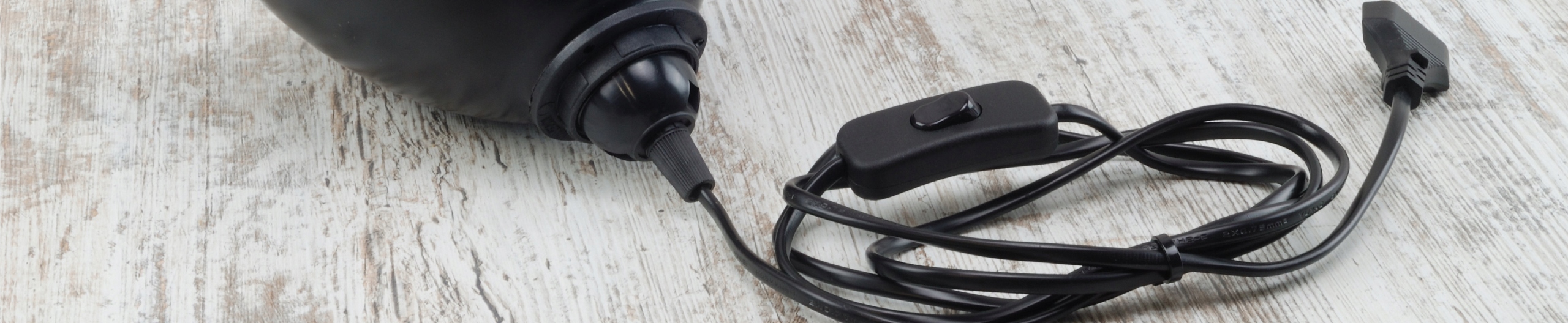 чорний роз'єм, кабель 2м з вилкою, вимикач, патрон лампи, кабель
