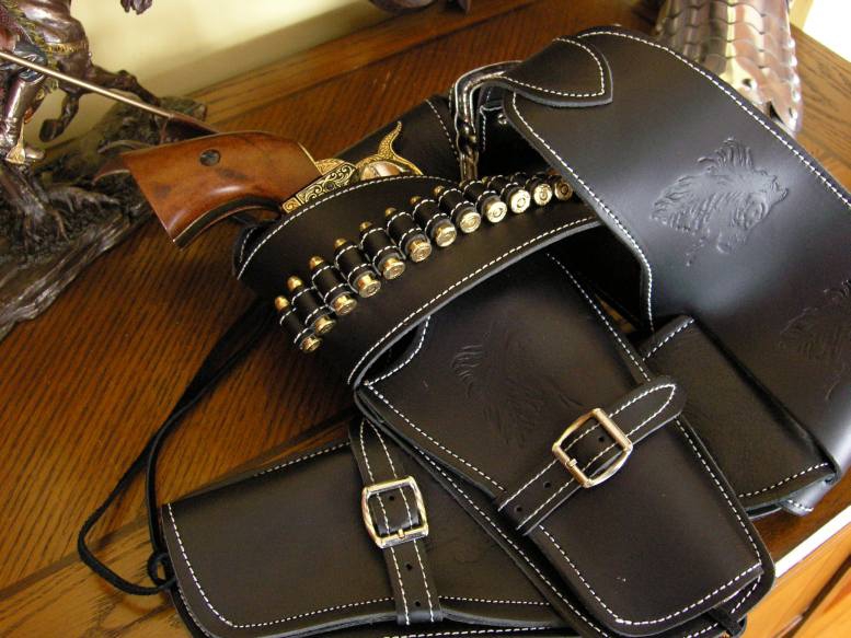 ЧОРНИЙ ШКІРЯНИЙ РЕМІНЬ З ПАТРОНАМИ ДЛЯ ДВОХ РЕВОЛЬВЕРІВ