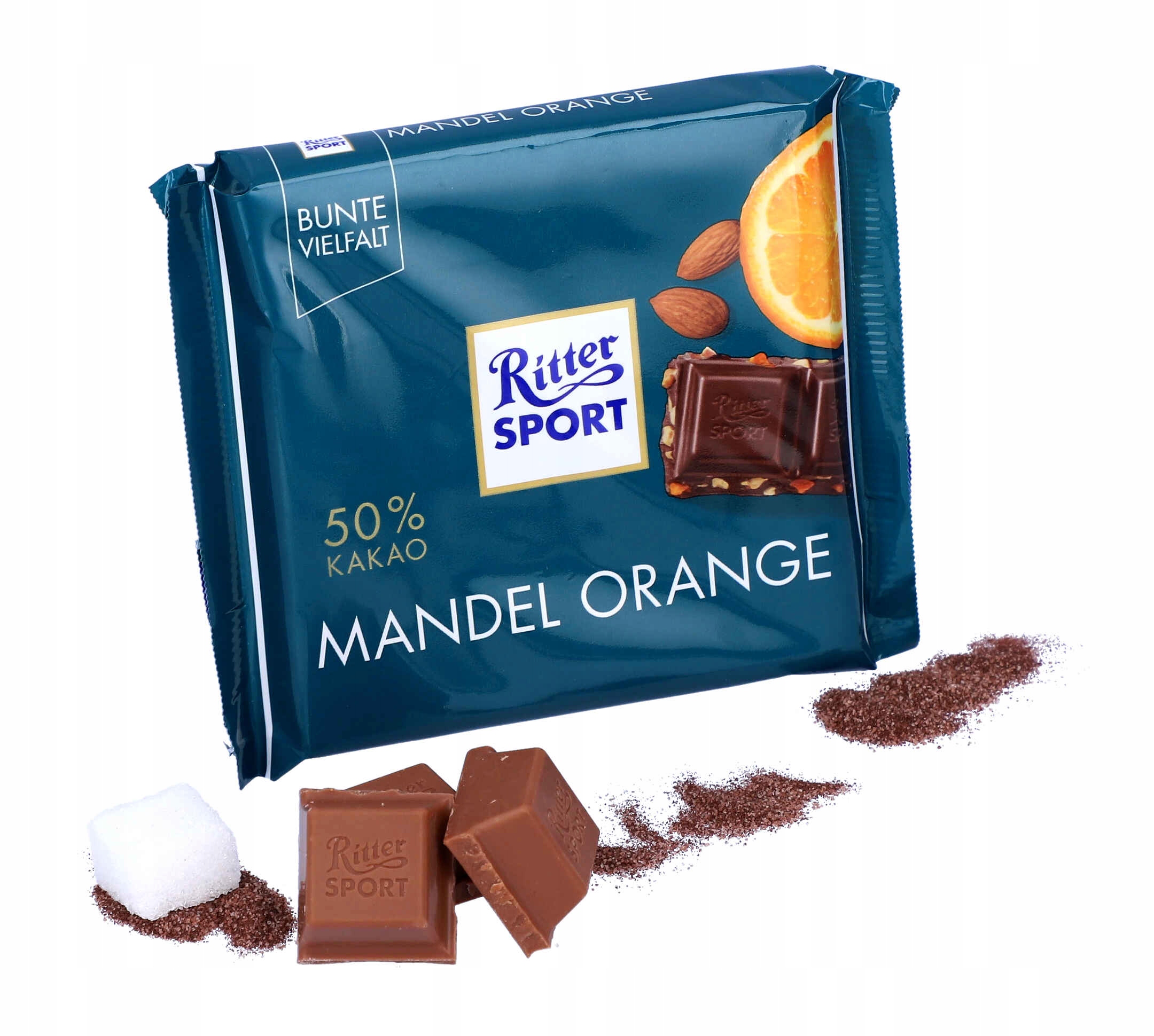 - Ріттер СПОРТ темний шоколад з мигдальним апельсином DE