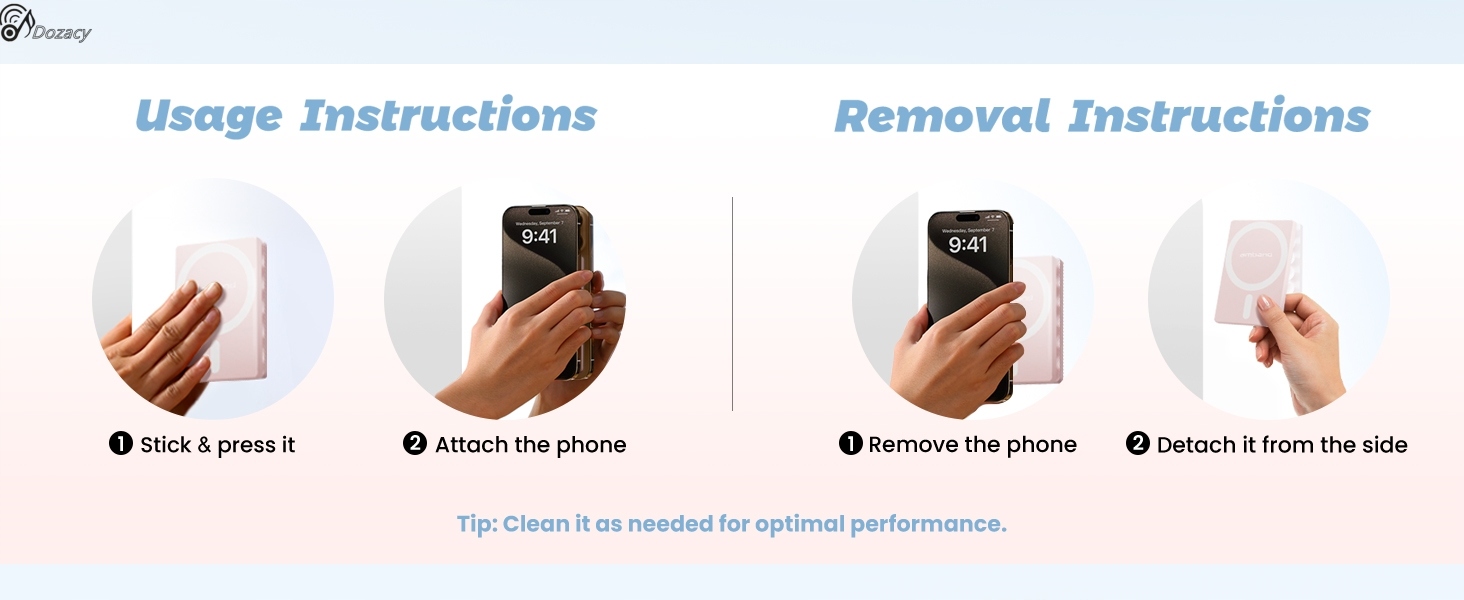 Безперешкодно прикладайте телефон до плоских, гладких і блискучих поверхонь, таких як дзеркала чи вікна, щоб робити селфі/відео без використання рук. Стильний і портативний, ідеальний для дому, тренажерного залу, подорожей тощо.