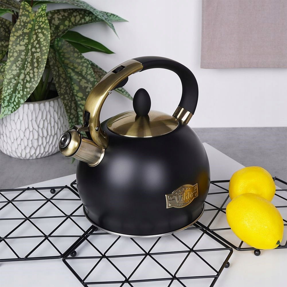 Привабливий чайник, виготовлений з матеріалів найвищої якості. Ми будемо використовувати його для кип'ятіння води для кави, чаю або для заварювання трав. Зручний у використанні завдяки ручці, кришці та автоматичному свистку. Ми можемо кип'ятити воду в чайнику дуже швидко, а чистити його дуже зручно. Чайник - чудова ідея подарунка. УВАГА! Чайник повинен бути заповнений принаймні наполовину, щоб уникнути перегріву. Зміни кольору на зовнішній поверхні у разі невідповідності мінімальним параметрам експлуатації не можуть бути приводом для рекламації. Оригінальний продукт Vilde. Вироблено відповідно до європейських стандартів.