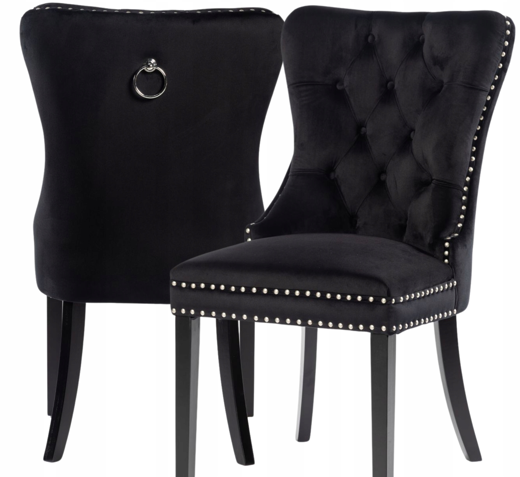 Чорний стілець із стукром Ludwik Velor Velos Velvet Moormed Wooden