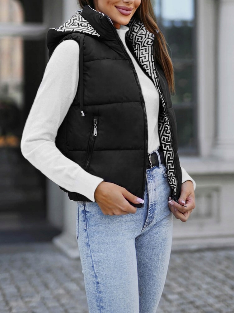 Чорний стьобаний жіночий жилет з капюшоном - знімний капюшон l