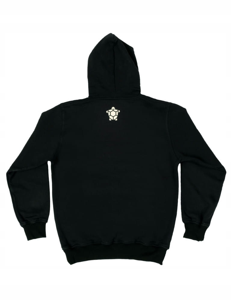 Самий класичний і універсальний світшот чорного кольору з камуфляжним написом Tletur, просторою кишенею та декоративними шнурками для регулювання капюшона.