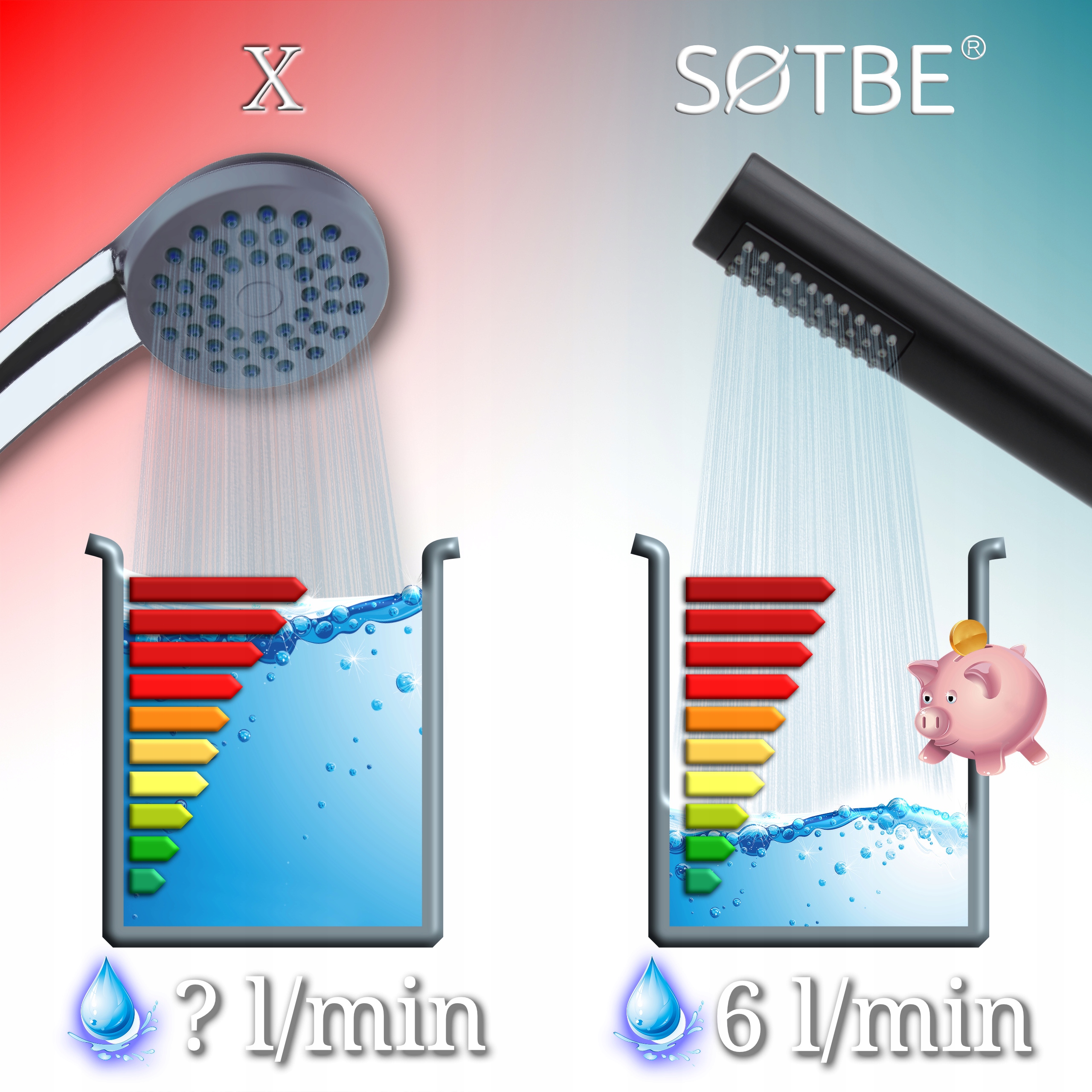 ✅ Ефефективність - Наш слухавка споживає лише 6 літрів води, до 60% менше, ніж стандартні моделі.