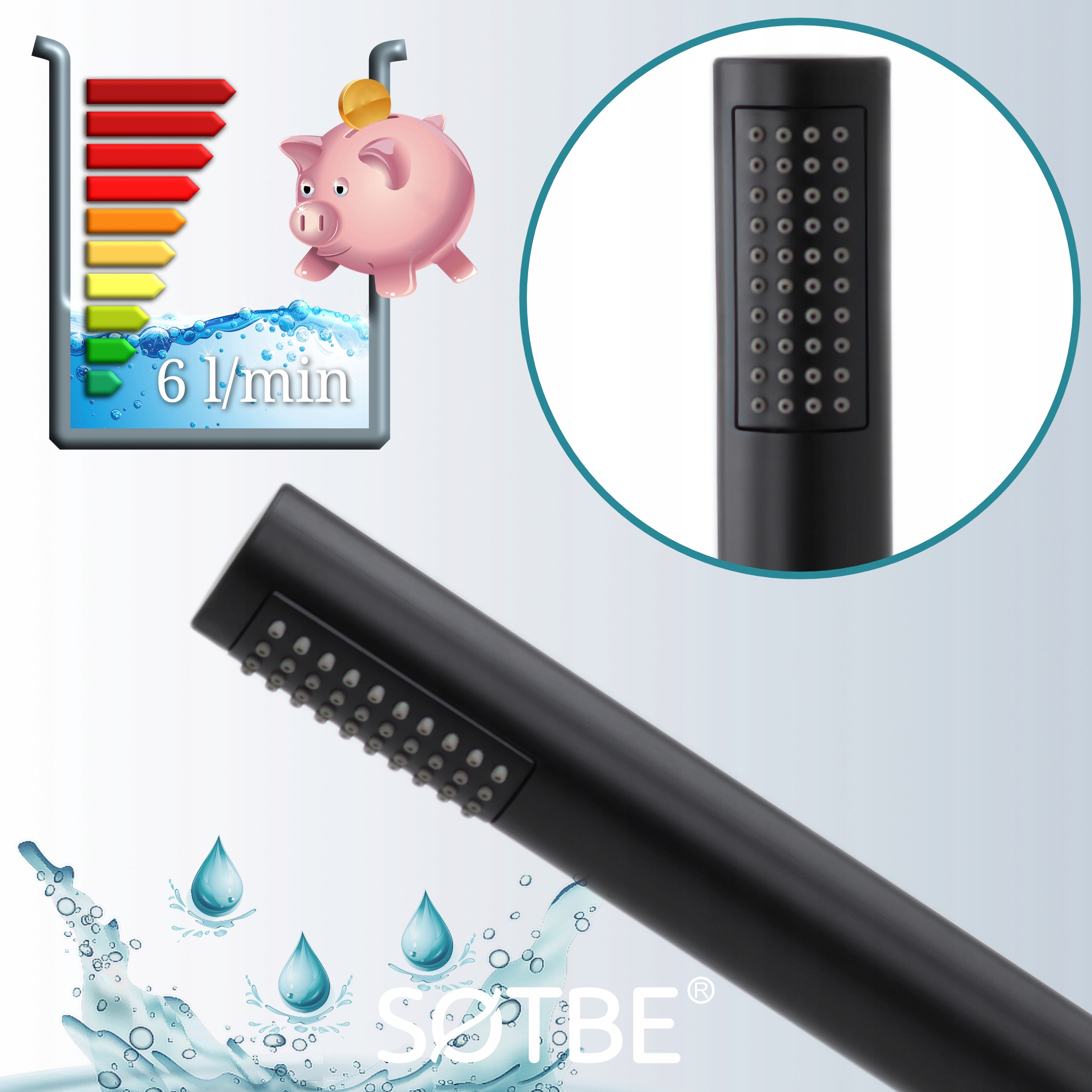 Продуктпоздовжній економія води, легка та безпечна для ванни 1-Zakresowa Sotbe Lark Baka Nero з антикальським кольором чорного килима Sotbe Lark Baka Nero Nero надає сильний тиск і адекватний потік, щоб отримати приємний душ навіть при низькому тиску води. Він був виготовлений з високоякісної пластику ABS, що робить його легким і довговічним. Чорна матова обробка, обтічна форма робить її не лише функціональною, але й елегантною. Гладке покриття полегшує збереження слухавки чистим без вапнякового мулу. Форсунки забезпечують сильний тиск, незважаючи на низький потік води = менше споживання води, а енергія, необхідна для нагрівання потокового потоку, зменшує споживання води до 60%