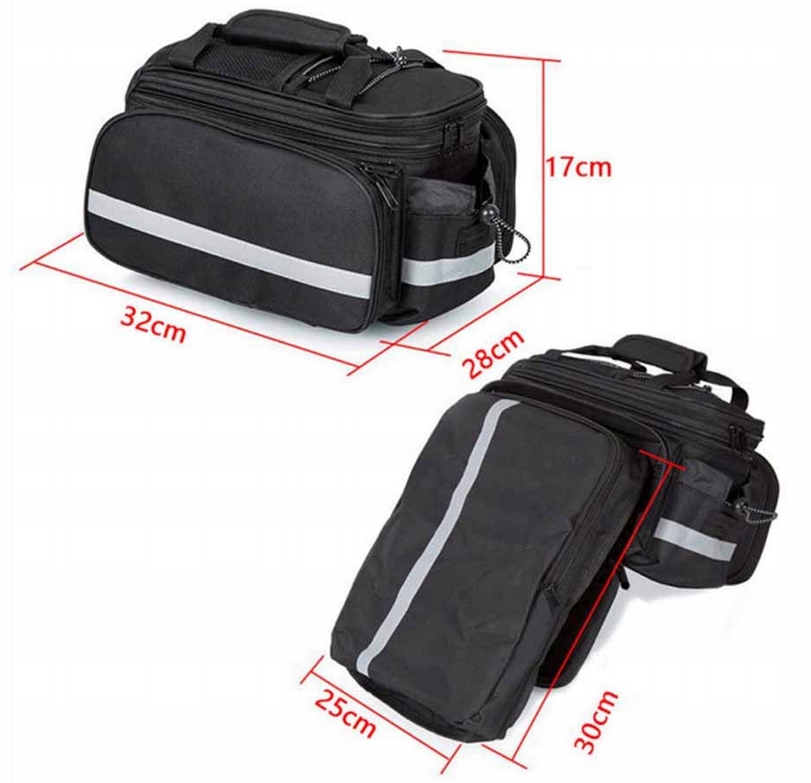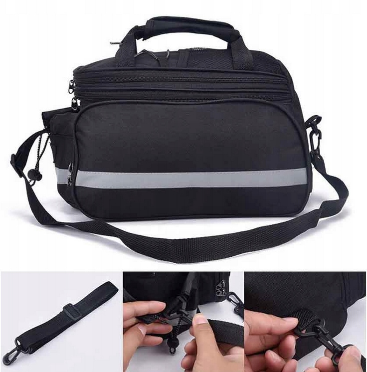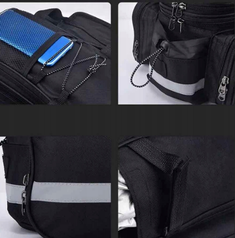 Знизу мішків була пришита в брусах , оснащені сильним липучком , завдяки якому ви можете зробити Ідеальний збіг і прикріплення жорсткий пані до вашого багажника, не турбуючись, що вона зможе послабити. Його збірка та демонтаж буквально займає секунди, і завдяки додатковому ремені ви можете взяти сумку з собою .