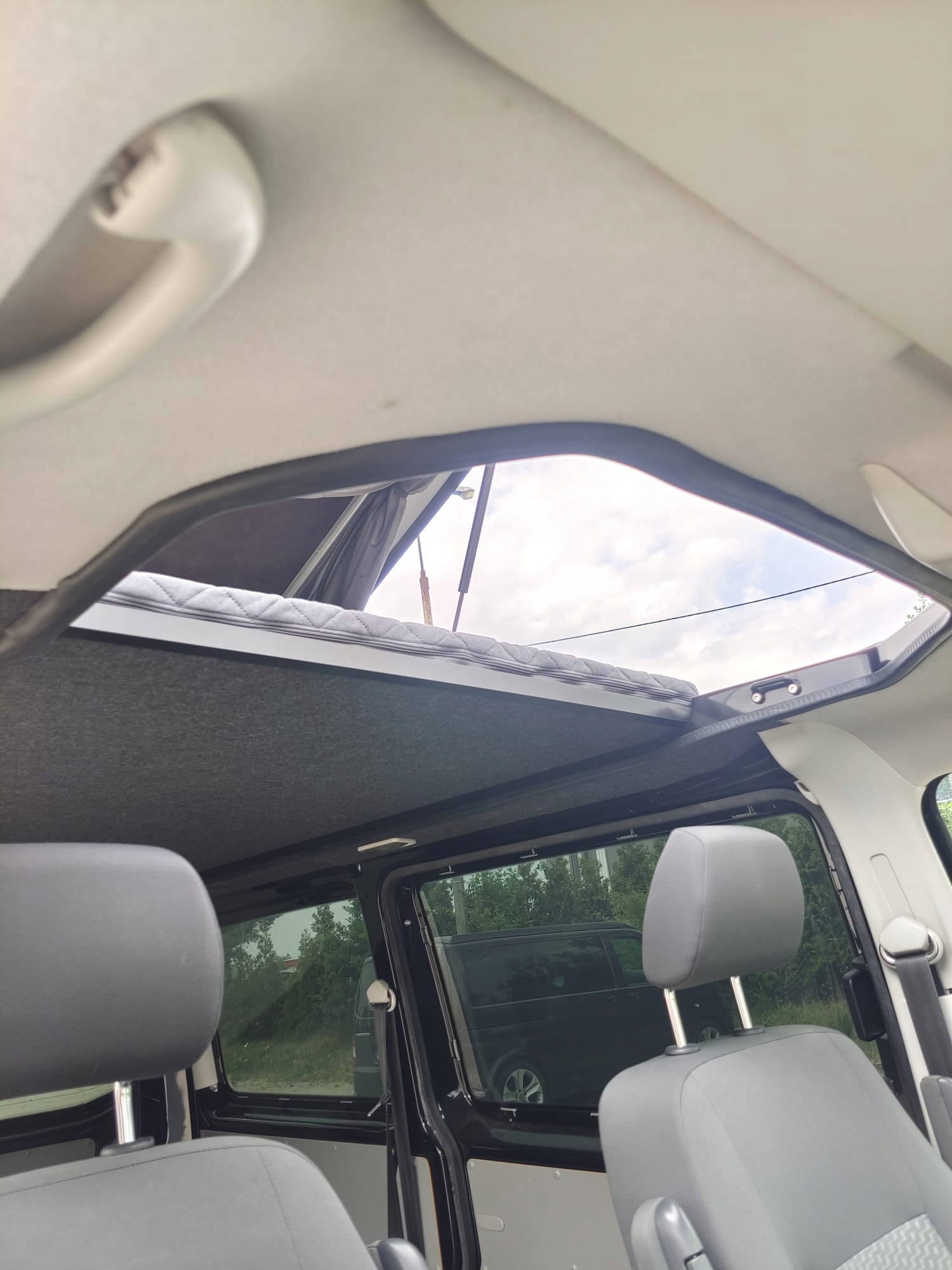 Чорний Volkswagen T5, T6, T6.1 Сплячий дах піднятий до фургона