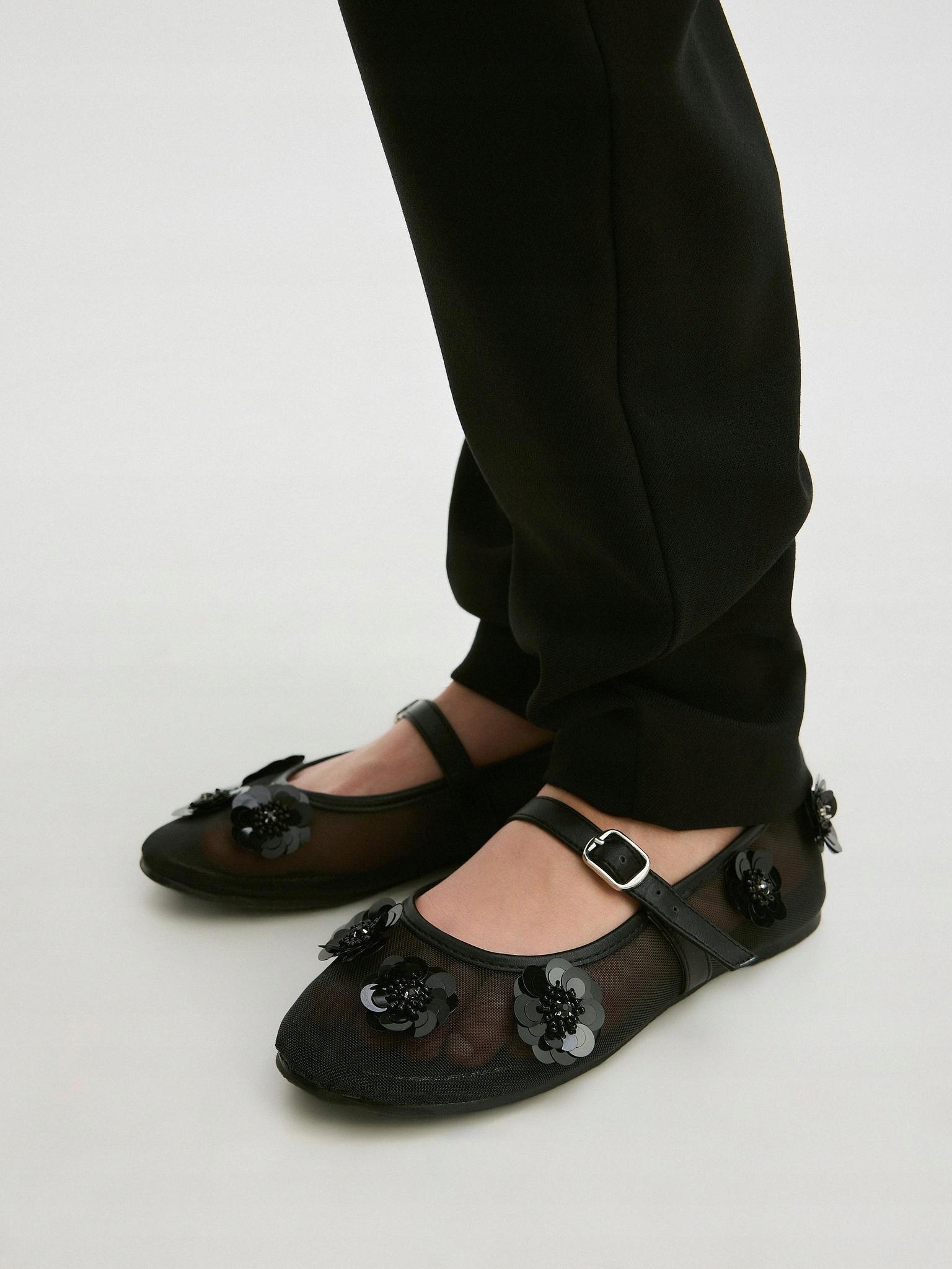 Чорний вставлений кріплений балерини балеринські балерини 39