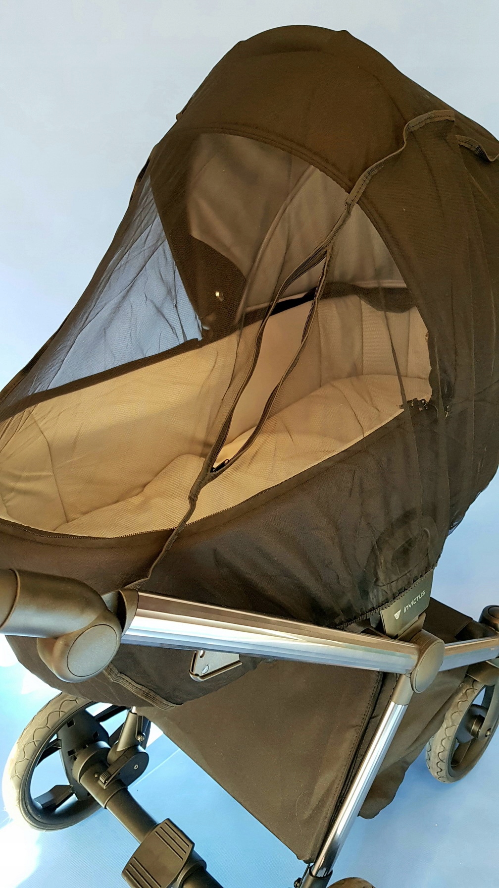 Практичний і надійний Москіє xxl ідеально підходить для будь -якого інвалідного візка. Зроблений з невеликої чорної сітки, вона ефективно захищає дитину від комарів, мух та інших комах, забезпечуючи спокійні прогулянки навіть у теплі літні дні.