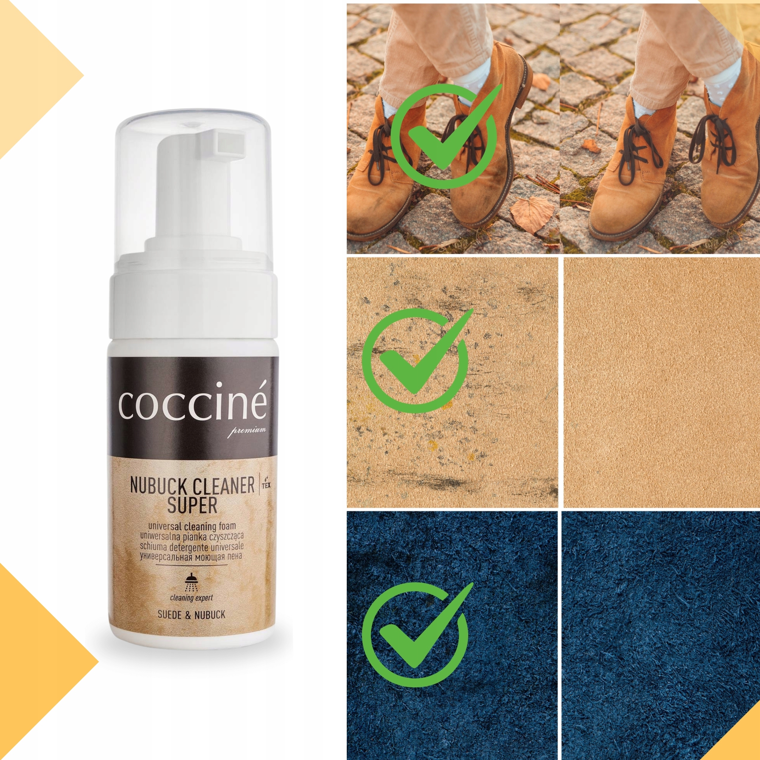 Завдяки очищувальній піні Coccine Nubuck Cleaner ваше взуття із замші та нубуку відновить свій елегантний вигляд і прослужить вам багато сезонів. Виберіть перевірений продукт від авторитетного бренду, щоб забезпечити своєму взуттю належний догляд і захист!