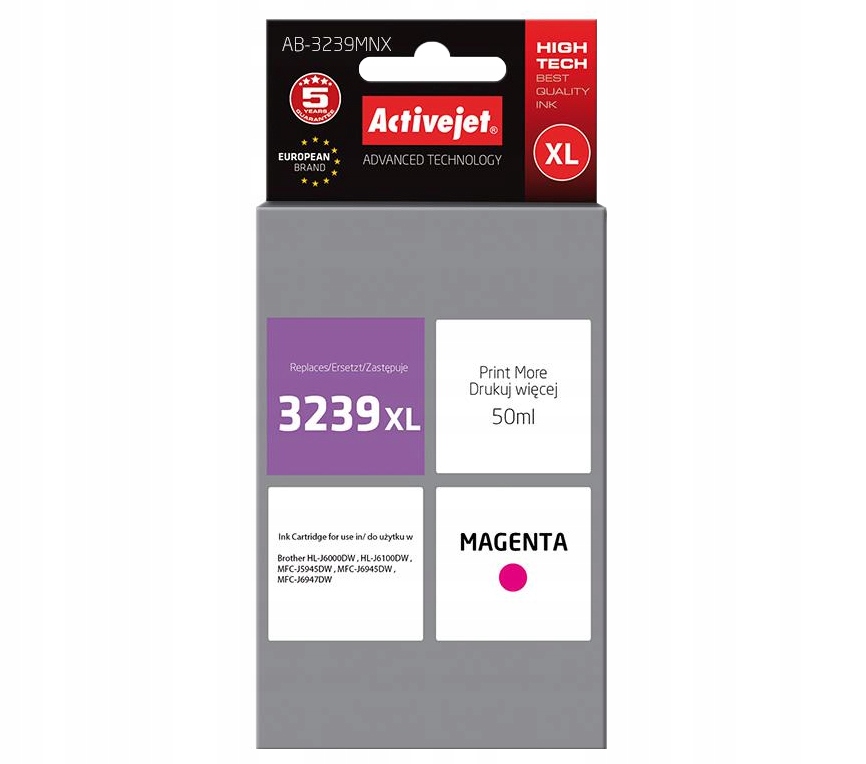 ЧОРНИЛА ACTIVEJET LC3239XL LC3237XL для BROTHER MFC-J5945DW MFCJ6945DW MAGENTA