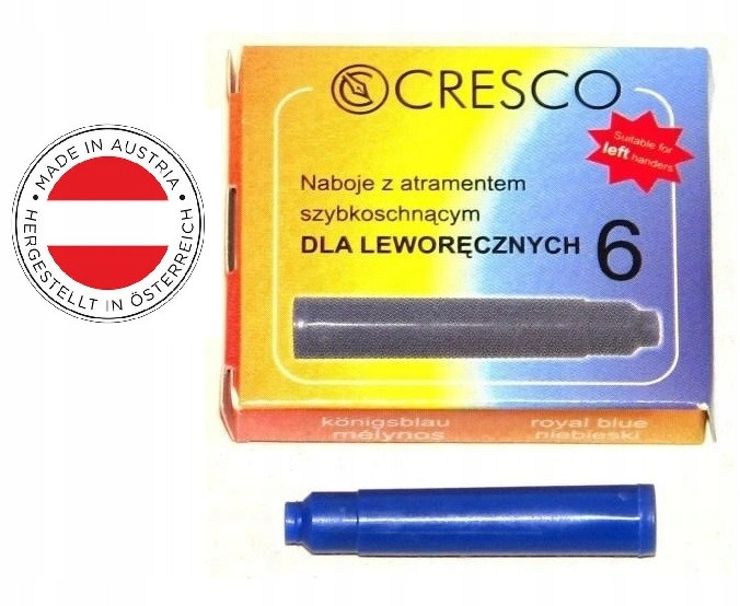 ✅Чорнильні картриджі марки CRESCO, оснащені найякіснішими швидкосихаючими чорнилами, рекомендовані для людей, які пишуть лівою рукою синього кольору.