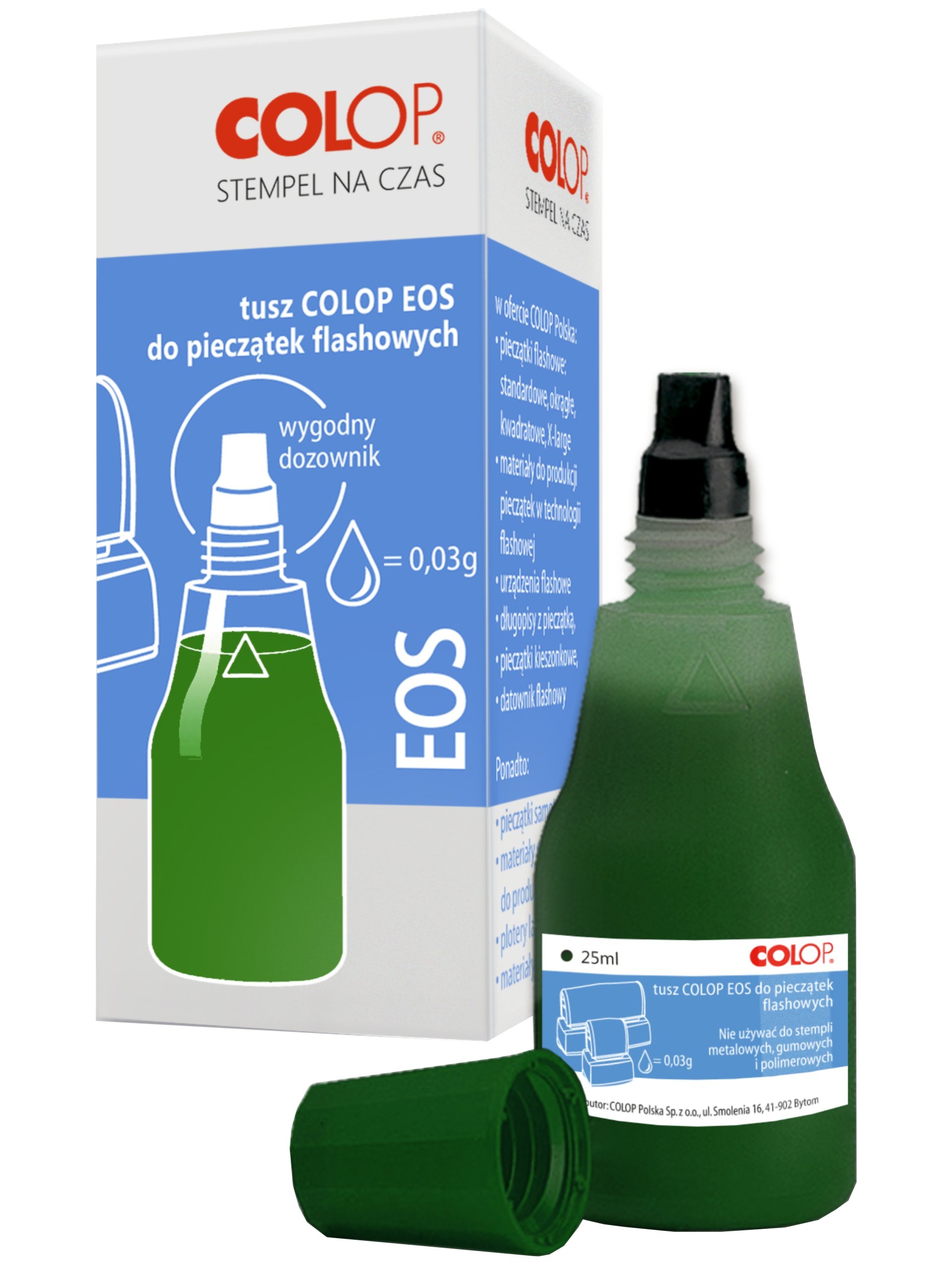 Дуже високоякісне щільне чорнило, яке відображає вміст яскравими, надзвичайно насиченими кольорами. Призначений для штампів для пляшок COLOP EOS. Підходить для маркування паперу. Дозатор, прикріплений до пляшки, полегшує правильне наповнення марки.