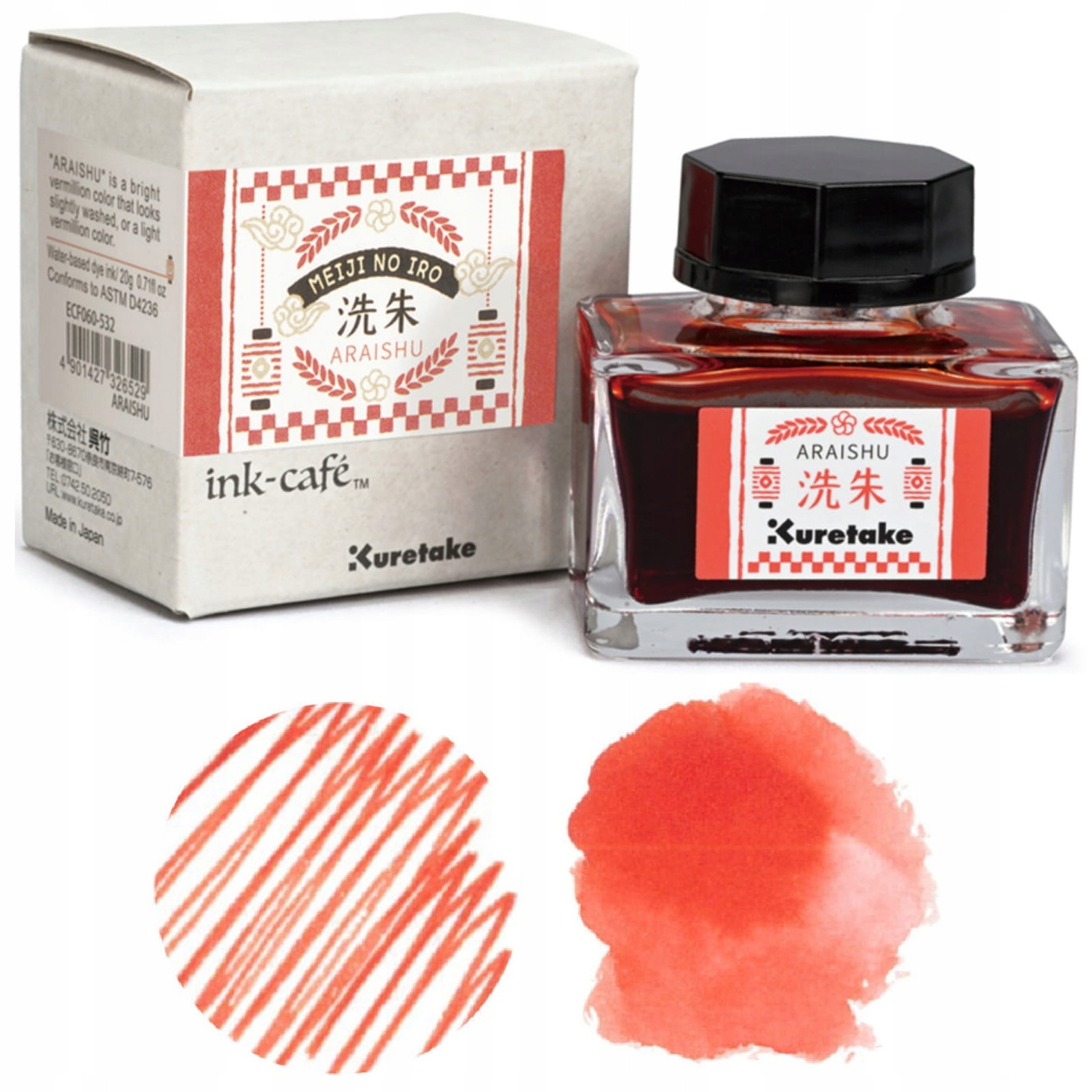◾ Ink-cafe meiji та Iro Kuretake багатий барвником атмації на водній основі , які можна використовувати з відсотковими пір'ями, склом, склом (Nibs), щітками та порожніми фільтрувальними дзвіночками та пензлем Пенамі.
