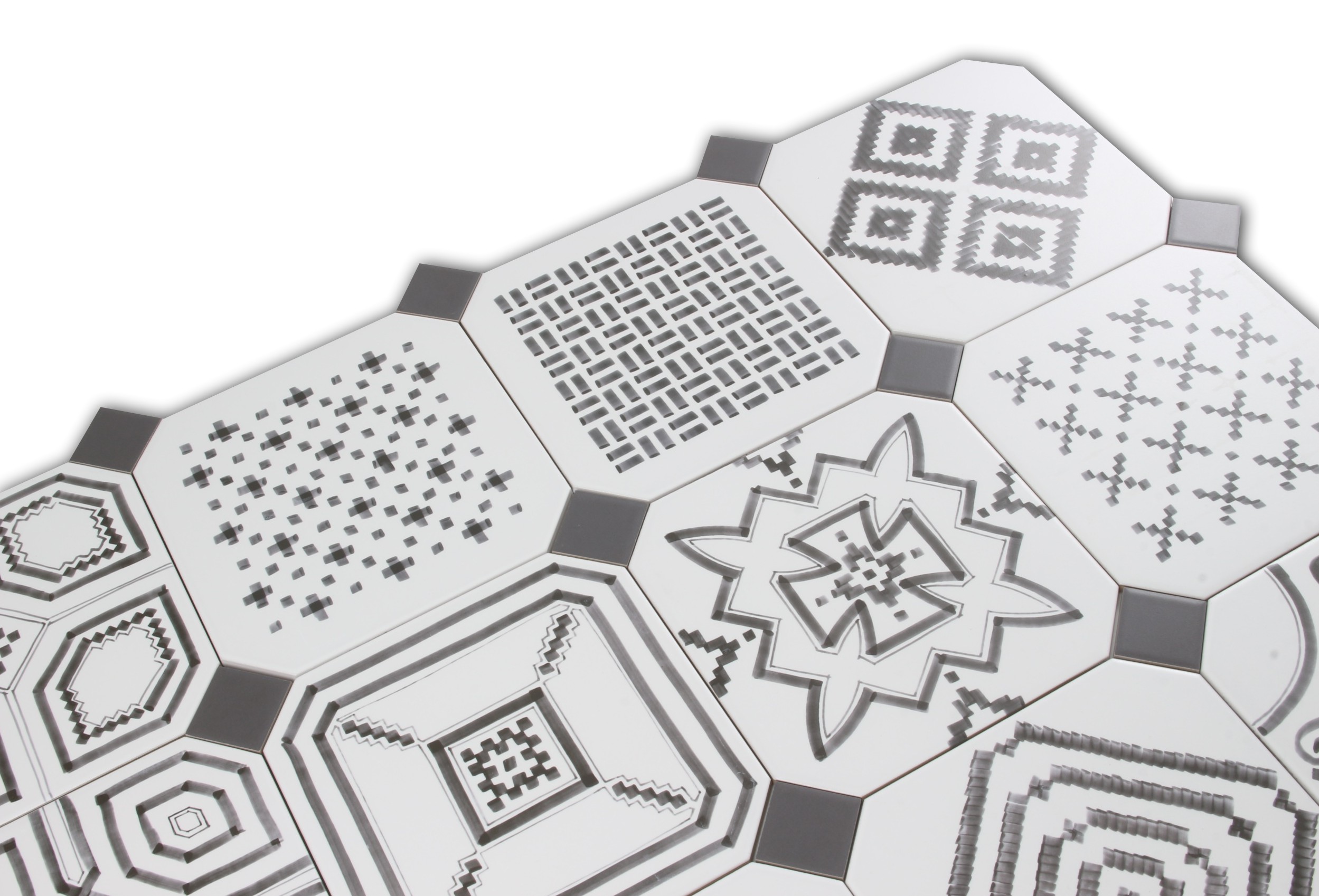 На малюнках представлені плитки з декоративним куполовим куполом Antracita. Sariette Sombra 20x20 є ацетною, є печорними плитками з вирізаними кутами, збагаченими декоративним кубом, який ви можете вибрати в будь -якому кольорі. Variette Sombra 20x20 ідеально підходить для вашого інтер’єру як на підлозі, так і на стіні. Основа плитки -це біла поверхня, на якій була хитромудрована чорна фарба верхнього класу. Якщо ви шукаєте оригінальні рішення у своєму інтер’єрі, то слід визначити ці плитки.