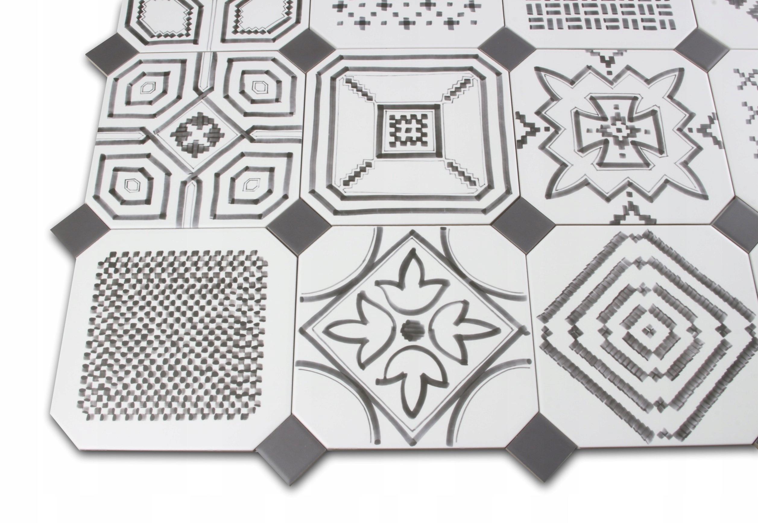 Чорно -біла плитка для підлоги 20x20 печворк