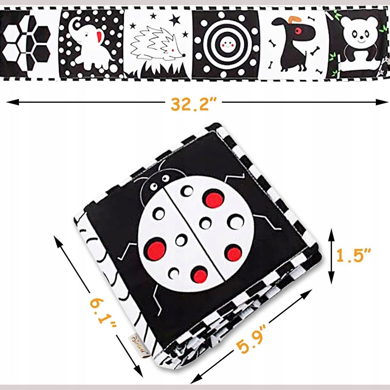 【Безпечні та довговічні дитячі іграшки】Наші оновлені чорно-білі іграшки для новонароджених виготовлені з нетоксичної тканини преміум-класу без запаху та мають міцнішу структуру, витримують подряпини дитини та самі по собі тримаються. Це міцне зшивання, стійке до прання, багаторазове використання, тому вам не потрібно турбуватися про те, що діти погризуть або порвуть м’які дитячі книжки. Дуже підходить для розвиваючих іграшок для дитини 0 3 6 місяців.