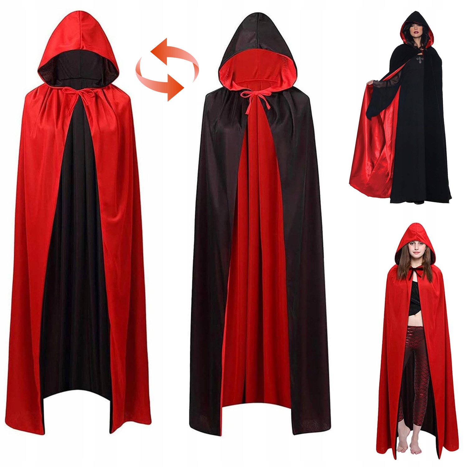 ЧОРНО-ЧЕРВОНЕ ДВОСТОРОННЄ ПАЛЬТО З КАПЮШОНОМ НАКИДКА З КАПЮШОНОМ ХЕЛЛОУЇН
